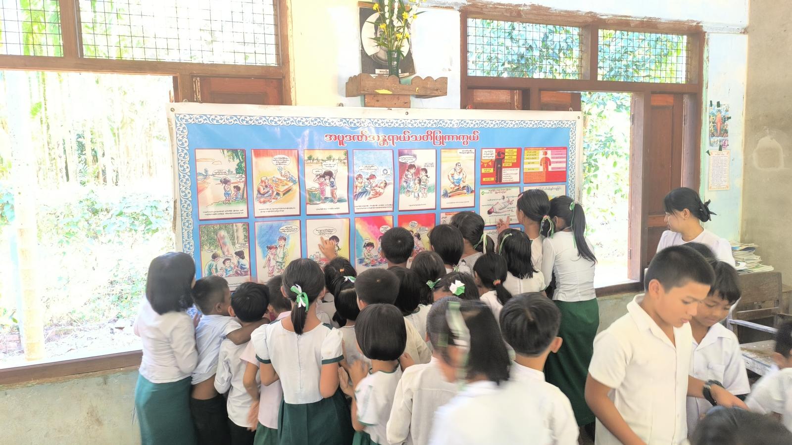 ထို့နောက် မြို့နယ်ပြန်ကြားရေးနှင့်ပြည်သူ့ဆက်ဆံရေး ဝန်ထမ်းများက ရေဘေးအန္တရာယ်၊ အပူဒဏ်အန္တရာယ်နှင့် ကလေးအလုပ်သမားပပျောက်ရေး အသိပညာပေး နံရံကပ်စာစောင်များကို ခင်းကျင်းပြသခဲ့ရာ ကျောင်းသား၊ ကျောင်းသူများက စိတ်ပါဝင်စားစွာ ဖတ်ရှုလေ့လာခဲ့ကြကြောင်း သိရသည်။
