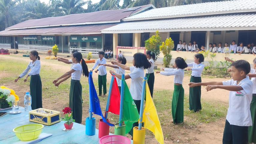 ထို့နောက်အလယ်တန်းအဆင့် ကျောင်းသား၊ ကျောင်းသူလေးများက ကိုယ်ကာယကြံ့ခိုင်မှုလေ့ကျင့်ခန်းအခန်း(၃)ဖြင့် အသင်းလိုက် အသီးသီးပါဝင်ယှဉ်ပြိုင်ခဲ့ကြကြောင်း သိရသည်။