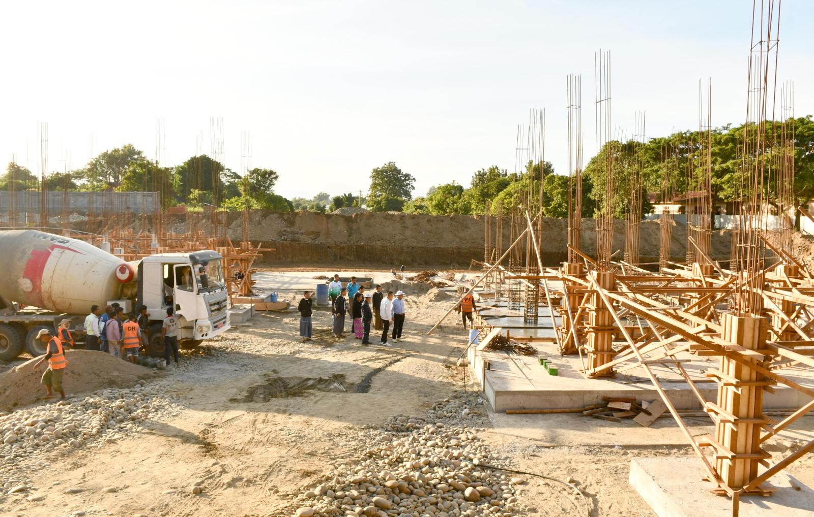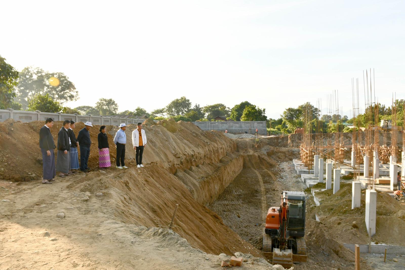 ယင်းနောက် ပြည်နယ်ဝန်ကြီးချုပ်နှင့် ပြည်နယ်လမ်းပန်းဆက်သွယ်ရေးဝန်ကြီးတို့သည် မြစ်ကြီးနားမြို့ မန်ခိန်ရပ်ကွက်အတွင်းရှိ ကွင်းအမှတ်- ၄ / ယောရင်ကွင်း၊ ဦးပိုင်အမှတ် ၃၅ /၂င ၊ ၃၅ /၂စ ၌ ကချင်ပြည်နယ်တရားလွှတ်တော်ရုံး အဆောက်အဦသစ် အလျား ၂၀၆ ပေ၊ အနံ ၁၅၃ ပေရှိ သံကူကွန်ကရစ် (၄) ထပ် အဆောက်အအုံ တည်ဆောက်ရေးလုပ်ငန်းခွင်သို့ သွားရောက်ပြီး ပြည်နယ် တရားလွှတ်တော်တရားသူကြီးချုပ် ဒေါ်အေးအေးမော်၊ တရားလွှတ်တော်တရားသူကြီးများ၊ တရားရေးဝန်ထမ်းများနှင့်အတူ အဆောက်အဦသစ်အား တာဝန်ယူဆောက်လုပ်သည့် G-3 ကုမ္ပဏီတာဝန်ရှိ သူနှင့်အတူ ၂၀၂၅-၂၀၂၆ ဘဏ္ဍာရေးနှစ်အတွင်း ဆောင်ရွက်ပြီးစီးရမည့် မြေသားပြုပြင်ခြင်းလုပ်ငန်း နှင့် အောက်ခြေဖောင်ဒေးရှင်းဆောင်ရွက်ခြင်းလုပ်ငန်းများ၊ ခြံစည်းရိုးအုတ်ကာရံခြင်းနှင့် Ground Tank တည်ဆောက်ခြင်းလုပ်ငန်းများနှင့် ဆက်စပ်လုပ်ငန်းများ ဆောင်ရွက်နေမှု အခြေအနေများကို ကွင်းဆင်းကြည့်ရှုစစ်ဆေးခဲ့ကြကာ လုပ်ငန်းများအရည်အသွေးပြည့်မီစွာဖြင့် အချိန်မီပြီးစီးအောင် ဆောင်ရွက်ရေးမှာကြားခဲ့ကြောင်း သိရသည်။