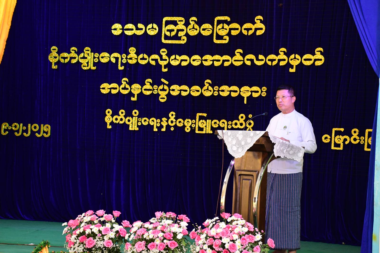 မဲပေးခြင်းသည်နိုင်ငံသားများမှ အမျိုးသားရေးတာဝန် ထမ်းဆောင်ခြင်းဖြစ်ပြီး ရွေးကောက်ပွဲမှသည် ပိုမိုကောင်းမွန်သောအနာဂတ်ဆီသို့ ဖော်ဆောင်နိုင်ရေးအတွက် “ဒို့အတူတူမဲပေးကြမယ်” အသိပညာပေး လက်ကမ်းစာစောင်များဖြန့်ဝေခြင်းကို ယမန်နေ့နံနက်ပိုင်းက ပုသိမ်-မုံရွာလမ်းမကြီး ဧရာဝတီတိုင်းဒေသကြီးလွှတ်တော်ရုံးရှေ့တွင် ပြုလုပ်ခဲ့ရာတိုင်းဒေသကြီးဝန်ကြီးချုပ် ဦးတင်မောင်ဝင်းသည် အစိုးရအဖွဲ့ဝင်ဝန်ကြီးများ၊ ဌာနဆိုင်ရာများနှင့် အတူ ပြည်သူများအား လက်ကမ်းစာစောင်များ ဖြန့်ဝေပေးခဲ့သည်။