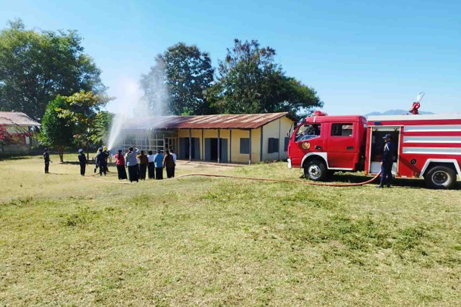 ထို့သို့ ဆောင်ရွက်ရာတွင် မြို့နယ်မီးသတ်ဦးစီးဌာန ဦးစီးအရာရှိ ဦးကျော်မျိုးလှိုင်နှင့်တပ်ဖွဲ့ဝင်များက မဲရုံများဖွင့်လှစ်ထားရှိသည့် အခြေခံပညာကျောင်းများအား မီးဘေးအန္တရာယ်ကြိုတင်ကာကွယ်ရေး ဆောင်ရွက်ထားရှိမှုများ၊ မီးလောင်မှုမဖြစ်ပွားစေရန် ဆောင်ရွက်ရမည့်နည်းလမ်းများ၊ မီးသတ်ဆေးဗူးများအသုံးပြုပုံတို့ကို တာဝန်ရှိသူများအား အသိပညာပေးရှင်းလင်းပြောကြားပြီး ဦးစီးအရာရှိနှင့်တပ်ဖွဲ့ဝင်များ၊ အရန်တပ်ဖွဲ့ဝင်များမှ မီးဘေးအန္တရာယ်ကြိုတင်ကာကွယ်ရန်အတွက် မီးငြိမ်းသတ်ယာဉ်ဖြင့် ဇာတ်တိုက်လေ့ကျင့်ခြင်းကို လက်တွေ့ ဆောင်ရွက်ခဲ့ကြောင်း သိရသည်။
