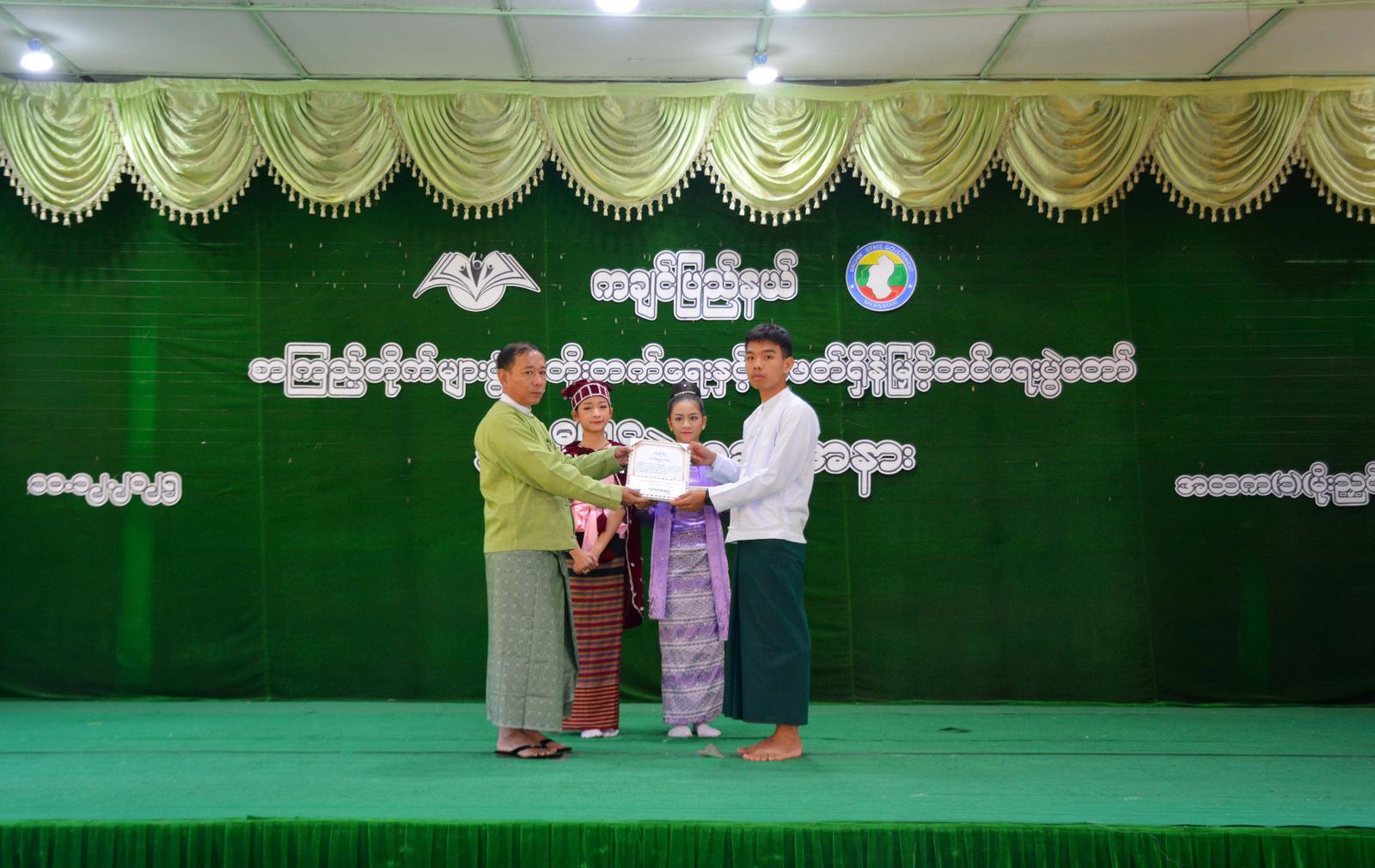 ယင်းနောက် အထက်တန်းအဆင့်နှင့် အလယ်တန်းအဆင့် စာစီစာကုံးပြိုင်ပွဲ၊ အထက်တန်းအဆင့်နှင့် အလယ်တန်းအဆင့် ပန်းချီပြိုင်ပွဲ၊ မူလတန်းအဆင့် ပုံပြင်ပြောပြိုင်ပွဲနှင့် ကဗျာရွတ်ဆိုပြိုင်ပွဲတို့မှ ဆုရရှိကြသူများကို သက်ဆိုင်ရာတာဝန်ရှိသူများက ဂုဏ်ပြုငွေသားဆုနှင့် ဂုဏ်ပြုမှတ်တမ်းလွှာများအား အသီးသီးပေးအပ်ချီးမြှင့်ကြပြီးနောက် ကျောင်းသား ကျောင်းသူများက ဖျော်ဖြေရေး အစီအစဉ်များဖြစ်သည့် “ပြည်ထောင်စု၏ ထာဝရအလှ”သီချင်းနှင့် ကချင်တိုင်းရင်းသားရိုးရာ အကအလှများဖြင့် တင်ဆက်ကပြ ဖျော်ဖြေခဲ့ကြသည်။