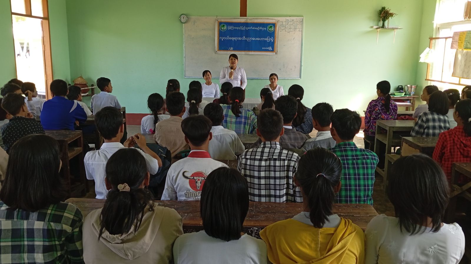 အခမ်းအနားတွင် ပြန်ကြားရေးနှင့် ပြည်သူ့ဆက်ဆံရေးဦးစီးဌာန၊ ဦးစီးအရာရှိ ဒေါ်မြင့်မြင့်ခိုင်က ကျောင်းသား၊ ကျောင်းသူ၊ လူငယ်များ ဗလငါးတန်ပြည့်စုံ၍ အသိပညာဗဟုသုတများ တိုးပွားလာစေရန်၊ စာပေဗဟုသုတများစွာ သိုလှောင်ထားသည့် ပညာဘဏ်တိုက် စာကြည့်တိုက်များနှင့် ရင်းနှီးကျွမ်းဝင်မှုရှိပြီး စာပေလေ့လာဖတ်ရှု့သည့် အလေ့အကျင့်ကောင်းများရရှိစေရန်၊ အားလပ်ချိန်များတွင် စာပေလေ့လာဖတ်ရှု၍ အချိန်ကိုအကျိုးစွာ အသုံးချနိုင်စေရေး၊ စေရေးအတွက် အခြေခံပညာကျောင်းများအရောက် ကွင်းဆင်း၍ လူငယ်ရေးရာ အသိပညာပေးဟောပြောပွဲ၊ အသိပညာပေးလုပ်ငန်းများ ကွင်းဆင်းဆောင်ရွက်နေမှုအား ရှင်းလင်းဆွေးနွေးခဲ့ပြီး လူငယ်နှင့်စာပေခေါင်းစဥ်ဖြင့် အသိပညာပေး ဟောပြောခဲ့ပြီး ကျောင်းသား၊ ကျောင်းသူများအား သဘာဝပတ်ဝန်းကျင် ထိန်းသိမ်းရေး အသိပညာပေးလက်ကမ်းစာစောင်များ ဖြန့်ဝေပေးခဲ့ကြောင်း သိရသည်။