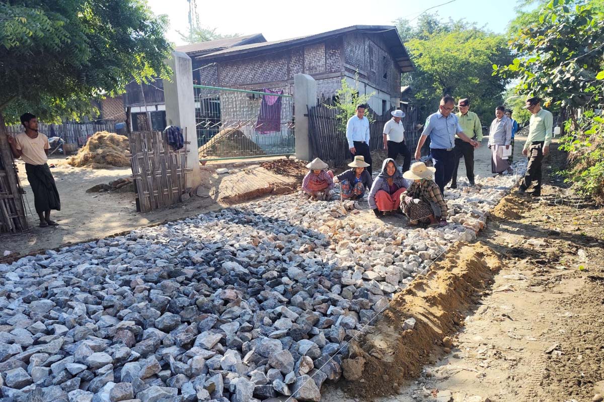 ထိုသို့ကွင်းဆင်းစစ်ဆေးဆောင်ရွက်ရာတွင် မြို့နယ်တည်ဆောက်ရေးနှင့် အရည်အသွေးစစ်ဆေးရေးကော်မတီဉက္က ဦးမျိုးမင်းသိန်းနှင့်အဖွဲ့ဝင်များက ၂၀၂၅-၂၀၂၆ ဘဏ္ဍာနှစ် တိုင်းဒေသကြီးခွင့်ပြုရန်ပုံ ငွေကျပ် (၁၂.၅၀)သန်းဖြင့် မြို့နယ်စည်ပင်သာယာရေးအဖွဲ့မှဆောင်ရွက်လျက်ရှိသည့် ခွာညိုလမ်း ကျောက်ခင်းခြင်းလုပ်ငန်း(၂၆၀ပေ x ၁၂ပေ x ၉လက်မ) ဆောင်ရွက်နေမှုအား ကွင်းဆင်းစစ်ဆေးခြင်း ဆောင်ရွက်ခဲ့ကြောင်း သိရသည်။