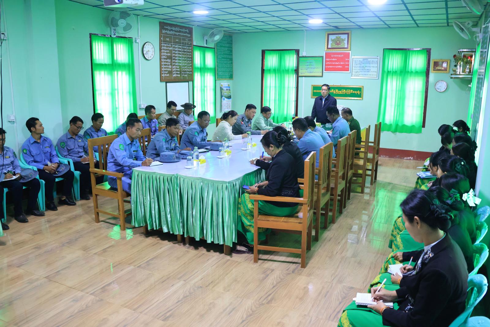 ထိုသို့ တွေ့ဆုံစဉ် ပြည်နယ်ဖွံ့ဖြိုးမှုကြီးကြပ်ရေးရုံး ညွှန်ကြားရေးမှူးက ဘဏ္ဍာရေးနှစ်အတွင်း ဒေသဖွံ့ဖြိုးရေးလုပ်ငန်းများ အကောင်အထည်ဖော် ဆောင်ရွက်ပြီးစီးမှုနှင့် ဆက်လက် ဆောင်ရွက်နေမှု၊ ဝန်ထမ်းများတာဝန်ထမ်းဆောင်မှု၊ ပြည်နယ်ရန်ပုံငွေဖြင့် ဆောင်ရွက်သည့်လုပ်ငန်းများ ၉၉ ရာခိုင်နှုန်းပြီးစီးမှုအခြေအနေများကို ရှင်းလင်းတင်ပြသည်။ ပြည်နယ်ဝန်ကြီးချုပ်က လုပ်ငန်းများ သတ်မှတ်အရည်အသွေးပြည့်မီစွာဖြင့် သတ်မှတ်ကာလ ပြီးစီးအောင်ဆောင်ရွက်ရန်၊ လမ်းနှင့်လမ်းပခုံးများ၊ ရေမြောင်းများအား သတ်မှတ်ချက်များနှင့်အညီ ဖြစ်စေရေး စနစ်တကျဆောင်ရွက်ရန်နှင့် ဝန်ထမ်းများအနေဖြင့် မိမိတို့၏ လုပ်ငန်းတာဝန်များကို အောင်မြင်အောင်ဆောင်ရွက်နိုင်ရန်အတွက် လိုအပ်သည့်ပံ့ပိုးကူညီမှုများနှင့် သက်သာချောင်ချိရေး အတွက် စဉ်ဆက်မပြတ်ဆောင်ရွက်ပေးရန် မှာကြားခဲ့သည်။ ထို့နောက် တက်ရောက်လာသည့် ဝန်ထမ်းများက အခက်အခဲများ၊ ဖြည့်ဆည်းပေးရန်အချက်များတင်ပြမှုအပေါ် လိုအပ်သည်များ ပေါင်းစပ်ညှိနှိုင်းပေးသည်။