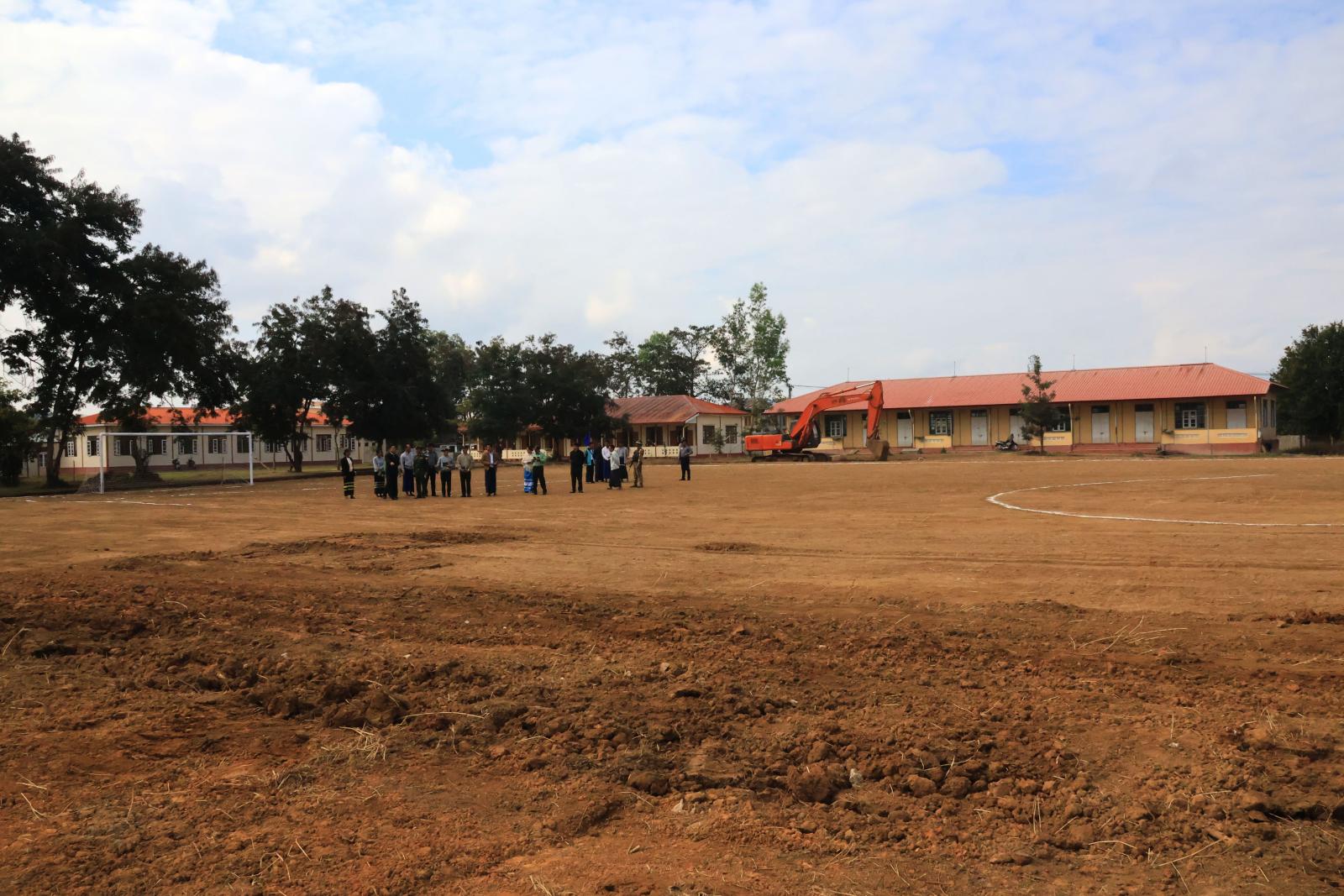ဆက်လက်၍ ပြည်နယ်ဝန်ကြီးချုပ် တာဝန်ရှိသူများသည် နမ့်ကွတ်ရပ်ကွက်၊ အခြေခံပညာ အထက်တန်းကျောင်း(ခွဲ)သို့ ရောက်ရှိကာ ကျောင်းဝင်းအတွင်း ကျောင်းသား ကျောင်းသူများ အားကစားလှုပ်ရှားမှုဆောင်ရွက်နိုင်ရန် ပြည်နယ်အစိုးရအဖွဲ့ အစီအစဉ်ဖြင့် ဘောလုံးကွင်း ဖောက်လုပ် ပေးနေမှုကို ကြည့်ရှုစစ်ဆေးသည်။ ပြည်နယ်ဝန်ကြီးချုပ်က ကျောင်းဘောလုံးကွင်းအား သတ်မှတ်ထားသည့် ဘောလုံးကွင်းအင်္ဂါရပ်များနှင့် ပြည့်စုံအောင် ဆောင်ရွက်ရန်၊ ပြေးခုန်ပစ်အားကစားပြိုင်ပွဲများ ကျင်းပဆောင်ရွက်နိုင်ရန်အတွက် ပြေးလမ်းများ ထည့်သွင်းဆောင်ရွက်နိုင်ရေး ဆောင်ရွက်သွားရန်၊ ကျောင်းဝင်းအတွင်း အရိပ်ရပင်နှင့် ပန်းအလှပင်များ စိုက်ပျိုးသွားရန်နှင့် ကျောင်းနှင့် ကျောင်းပတ်ဝန်းကျင် သန့်ရှင်းသာယာမှုရှိစေရေး စဉ်ဆက်မပြတ် ဆောင်ရွက်သွားရန် တာဝန်ရှိသူ များအား မှာကြားသည်။