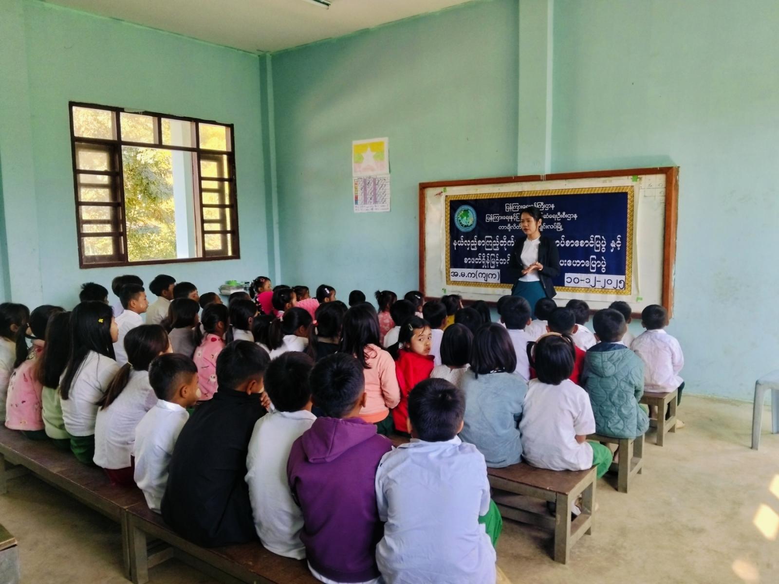 ရှမ်းပြည်နယ်(အရှေ့ပိုင်း)၊ တာချီလိတ်ခရိုင်၊ ကျိုင်းလပ်မြို့၌ ကျောင်းသား/ကျောင်းသူများ ဗလငါးတန်နှင့်ပြည့်စုံစေရန်ရည်ရွယ်၍ စာဖတ်ရှိန်မြှင့်တင်ရေး အသိပညာပေးဟောပြောပွဲကို ယနေ့ နံနက် (၁၀)နာရီက အခြေခံပညာမူလတန်းကျောင်း(ကျက)၌ ကျင်းပပြုလုပ်ခဲ့သည်။