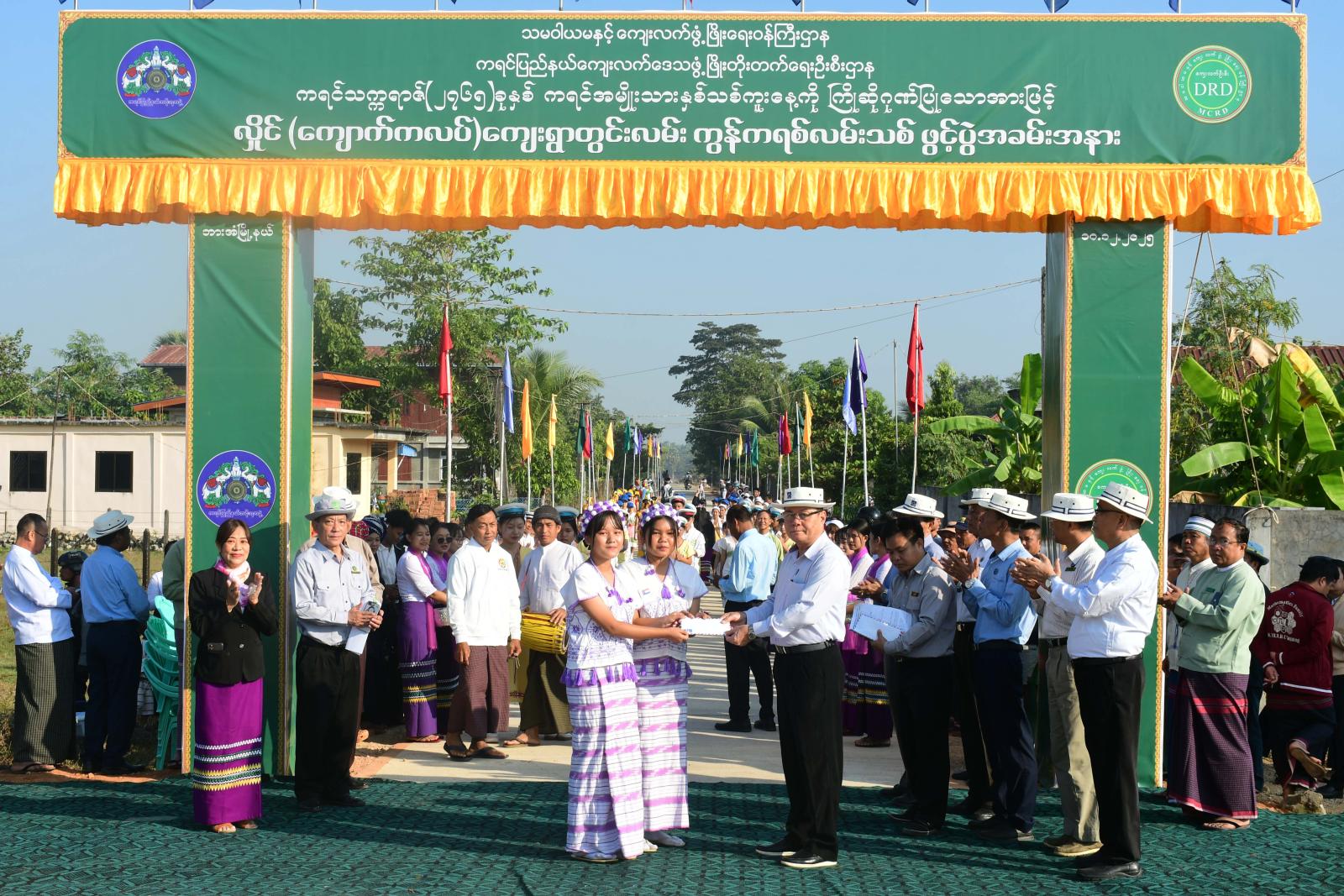 အဆိုပါကွန်ကရစ်လမ်းသစ်ကို ပြည်နယ်ဝန်ကြီးချုပ်ဦးစောမြင့်ဦး၊ ပြည်နယ်တရားလွှတ်တော် တရားသူကြီးချုပ် ဦးညွန့်လင်း၊ ပြည်နယ်အစိုးရအဖွဲ့ဝင်များက ဖဲကြိုးဖြတ်ဖွင့်လှစ်ပေးခဲ့ကြသည်။ ယင်းနောက် ပြည်နယ်ကျေးလက်ဒေသဖွံ့ဖြိုးတိုးတက်ရေးဦးစီးဌာနအနေဖြင့် ၂၀၂၅-၂၀၂၆ ဘဏ္ဍာရေးနှစ်တွင် ပြည်ထောင်စုနှင့်ပြည်နယ်အစိုးရရန်ပုံငွေများဖြင့် ကျေးလက်ကုန်ထုတ်လမ်း(၂၆)လမ်း အရှည်မိုင်ပေါင်း ၁၈ မိုင်ကျော်၊ ကျေးလက်ကုန်ထုတ်တံတား(၆၅)စင်း အရှည်ပေပေါင်း ၅၂၃ ပေ၊ ကျေးလက်ရေပေးရေးလုပ်ငန်း(၃၃)ခု၊ ဆိုလာစနစ်သုံးစိုက်ပျိုးရေရရှိရေးလုပ်ငန်း(၁)ခု၊ ယင်လုံအိမ်သာတည်ဆောက်ခြင်းလုပ်ငန်း(၂၁)ခုတို့ကိုဆောင်ရွက်ပေးနိုင်ခဲ့ပြီး စီမံကိန်းလုပ်ငန်းများ အနေဖြင့် မြစိမ်းရောင်ကျေးရွာစီမံကိန်းတစ်ရွာ၊ VDP စီမံကိန်းကျေးရွာ(၁၀)ရွာနှင့် ခေတ်မီစံပြကျေးရွာထူထောင်ရေးစီမံကိန်း(SMART Village)နှစ်ရွာတို့ကို အကောင်အထည်ဖော်ဆောင်ရွက်လျက်ရှိကြောင်း ပြည်နယ်ဝန်ကြီးချုပ်က အမှာစကားပြောကြားသည်။