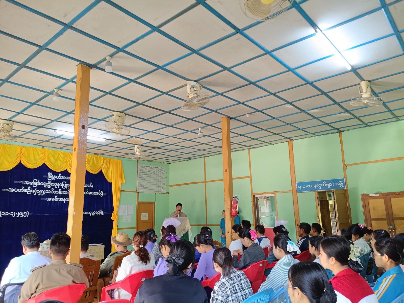 အဆိုပါ အခြေခံရှေးဦးသူနာပြုစုနည်းသင်တန်းဆင်းလက်မှတ်ပေးအပ်ပွဲတွင် မြို့နယ်စီမံခန့်ခွဲရေးနှင့် အုပ်ချုပ်ရေးကော်မတီဥက္ကဋ္ဌ ဦးဟိန်းထက်အောင်က အဖွင့်မှာစကားပြောကြား၍ မြို့နယ်ပရဟိတသင်တန်းများကိုယ်စား ဆရာကြီး ဦးမိုးတင်မှ ကျေးဇူးတင်စကားပြောကြား၍ မြို့နယ်ပြည်သူ့ကျန်းမာရေးနှင့်ယကုသရေးဦးစီးဌာန ဒေါက်တာမျိုးကိုကိုဇင်မှ ရှေးဦးပြုစုခြင်းဆိုင်ရာ အခြေခံသဘောတရား၊ လူမှုဂရုဏာလုပ်ငန်းများကို အချိန်နှင့်တပြေးညီ ထိရောက်စွာ အကောင်အထည်ဖော်ဆောင်ရွက်နိုင်ရန် ရှေးဦးပြုစုခြင်း အခြေခံအသိပညာတတ်မြောက်ပြီး ကျန်းမာရေးအသိပညာဖြင့် မိမိပတ်ဝန်းကျင်အား စနစ်တကျ ကူညီစောင့်ရှောက်ပြုစုနိုင်စေရန်နှင့် ရပ်ရွာလူထုနှင့်လူငယ်လူရွယ်များ၏ ဘေးဒဏ်ကြံ့ကြံ့ခံနိုင်စွမ်းရည် ပိုမိုမြင့်မားလာအောင် ကူညီဆောင်ရွက်နိုင်စေရန် ရည်ရွယ်၍ သင်တန်းကိုဖွင့်လှစ်ရခြင်းဖြစ်ကြောင်း ပြောကြားခဲ့သည်။