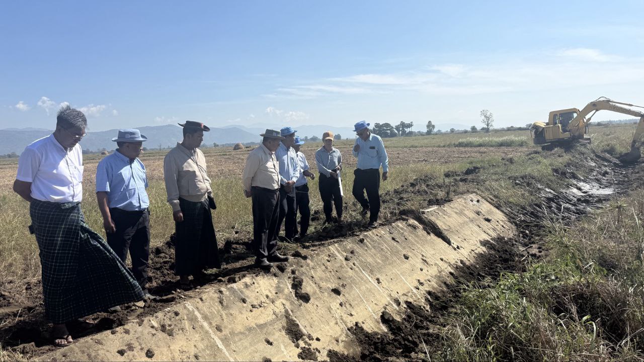 ထို့နောက် နေပြည်တော်ကောင်စီဝင် ဦးမြင့်စိုးသည် တာဝန်ရှိသူများနှင့်အတူ ငလျင်ဒဏ်ကြောင့် ပျက်စီးခဲ့သည့် သဲကောကြီးကျေးရွာအနီးရှိ မဒန်းရေသောက်စနစ်၊ လက်တံခွဲ(၅)၊ ရေပေးမြောင်း၊ အရှည် ပေ ၃၈၀ ပြုပြင်နေမှုအား ကြည့်ရှုစစ်ဆေးရာ တာဝန်ရှိသူများက ဆောင်ရွက်ပြီးစီးမှုများကို ရှင်းလင်းတင်ပြသည်။ အဆိုပါ ရေပေးမြောင်းမှ သဲကောကြီးကျေးရွာနှင့် ကူသပိတ်ကျေးရွာရှိ လယ်မြေများအား အကျိုးပြုနိုင်မည်ဖြစ်သည်။ နေပြည်တော်ကောင်စီဝင်နှင့်အဖွဲ့သည် ဆက်လက်၍ ပိတောက်ချောင်ကျေးရွာအုပ်စု၊ ကွမ်းခြံကျေးရွာအနီးရှိ ပေါင်းလောင်းလက်ယာမြောင်းမကြီး၊ လက်တံမြောင်း(၅)၊ အရှည်ပေ ၂၀၀ ပြုပြင်နေမှုအား ကြည့်ရှုစစ်ဆေးသည်။ အဆိုပါ လက်တံမြောင်းပြုပြင်ပြီးပါက ကွမ်းခြံနှင့် ပိတောက်ချောင်ကျေးရွာများမှ လယ်ဧက ၅၀၀ ဧကအား အကျိုးပြု ရေပေးဝေနိုင်မည်ဖြစ်ကြောင်း သိရသည်။