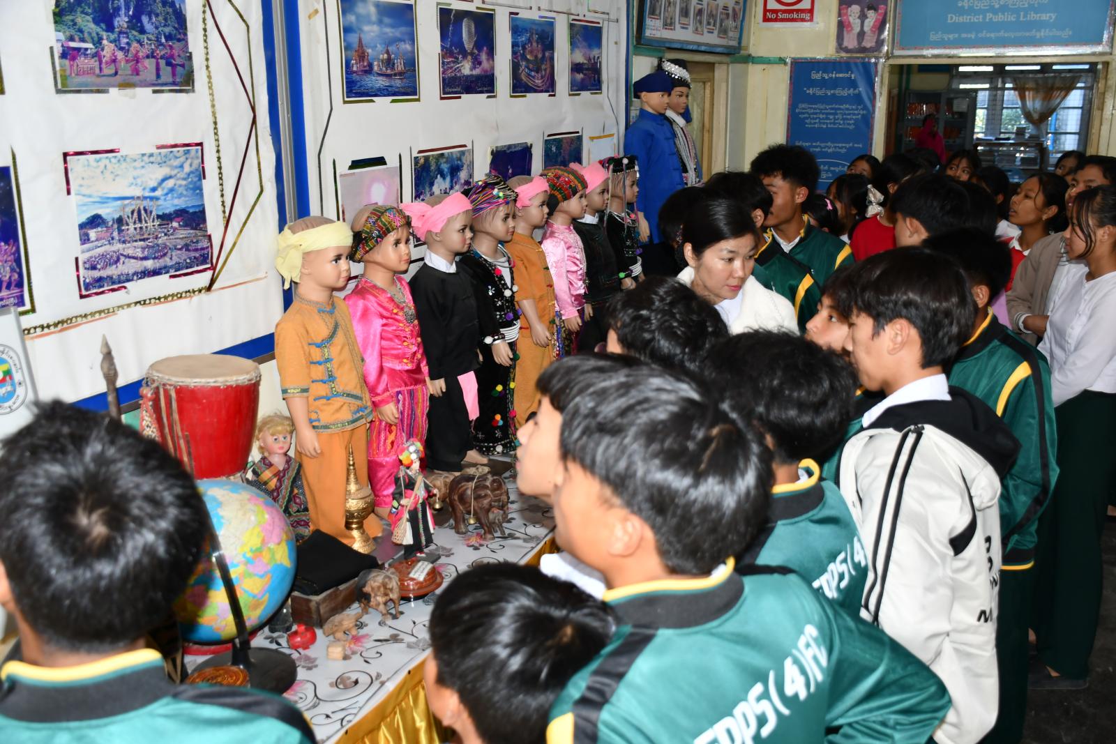 ထိုသို့ ဆောင်ရွက်ရာတွင် မူဆယ်ခရိုင် ပြည်သူ့စာကြည့်တိုက်သို့ လာရောက်လေ့လာသည့် အမှတ်(၄)၊ အခြေခံပညာမူလတန်းလွန်ကျောင်းမှ ကျောင်းသား/ကျောင်းသူများကို ဝန်ထမ်းများက သုတ/ရသစာအုပ်များ၊ လူငယ်ရေးရာအသိပညာပေး နံရံကပ်စာစောင်များ၊ မူးယစ်ဆေးဝါးနှင့်ပတ်သက်သည့် နံရံကပ်ဓာတ်ပုံများ၊ လှပသာယာပြည်မြန်မာ ရောင်စုံဓာတ်ပုံများ၊ Minimuseum တွင် ခင်းကျင်းပြသထားသည့် တိုင်းရင်းသားရိုးရာယဉ်ကျေးမှုအမွေအနှစ် အသုံးအဆောင်ပစ္စည်းများ၊ လက်ရာများကို ကျောင်းသား/ ကျောင်းသူများ အလွယ်တကူ ဖတ်ရှုနားလည်လွယ်သည့် မှတ်တမ်းဓာတ်ပုံများ၊ ဆောင်ပုဒ်များဖြင့် ပြသဆောင်ရွက်ပေးခဲ့ရာ ကျောင်းသား/ကျောင်းသူများက စိတ်ပါဝင်စားစွာ လေ့လာကြည့်ရှုမှတ်သားကြကြောင်း သိရသည်။