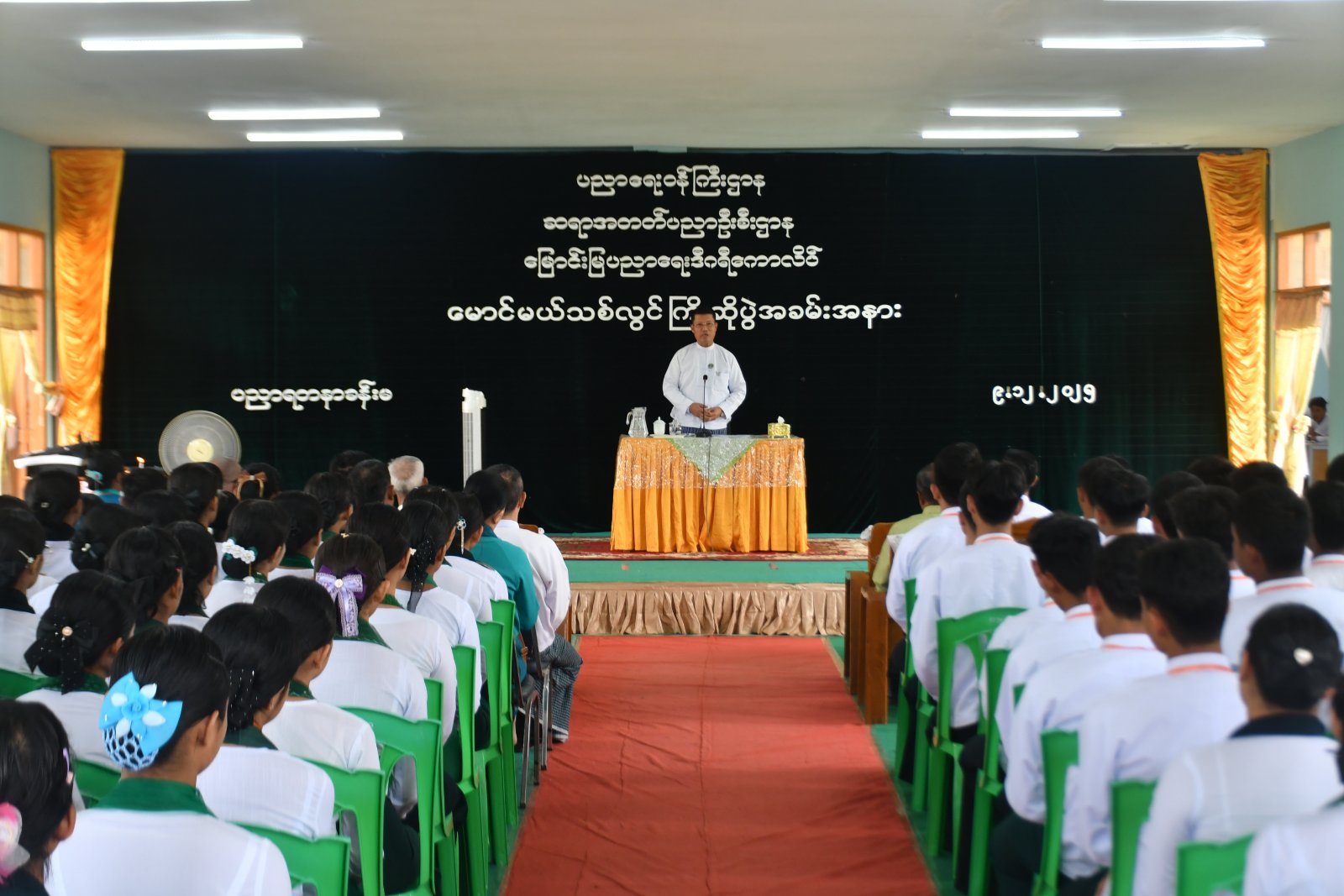 ဧရာဝတီတိုင်းဒေသကြီးအစိုးရအဖွဲ့ဝန်ကြီးချုပ် ဦးတင်မောင်ဝင်းသည် မြောင်းမြပညာရေး ဒီဂရီကောလိပ်၌ မောင်မယ်သစ်လွင်ကြိုဆိုပွဲအခမ်းအနားကို ယမန်နေ့နံနက် (၁၁း၀၀) နာရီအချိန်က တက်ရောက်အားပေးခဲ့ကြောင်း သိရသည်။