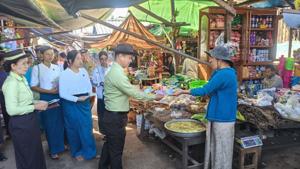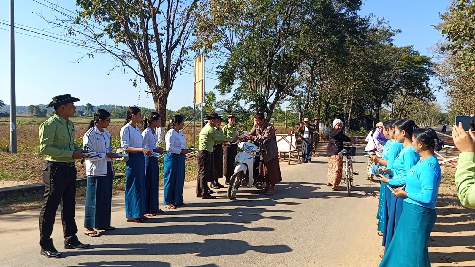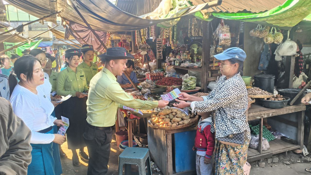 ထိုသို့ဆောင်ရွက်ရာတွင် မြို့နယ်စီမံခန့်ခွဲရေးနှင့်အုပ်ချုပ်ရေးကော်မတီဥက္ကဋ္ဌ ဦးအောင်နိုင်သူဦးနှင့်အဖွဲ့ဝင်များ၊ မြို့နယ်အမျိုးသမီးရေးရာအဖွဲ့၊ မိခင်နှင့်ကလေးစောင့်ရှောက်ရေးအသင်း၊ ပြန်ကြားရေးနှင့်ပြည်သူ့ဆက်ဆံရေးဦးစီးဌာနမှ ဦးစီးအရာရှိနှင့်ဝန်ထမ်းများ၊ ဌာနဆိုင်ရာတာဝန်ရှိသူများပူးပေါင်း၍ လူစည်ကားရာနေရာများဖြစ်သည့် မြို့မဈေးနှင့် မြို့အဝင်ဂိတ်တို့တွင် "ဒို့အတူမဲပေးကြမယ်" သတင်းစကားလက်ကမ်းစာစောင်များကို ပြည်သူများအား အခမဲ့ဖြန့်ဝေပေးခဲ့ကြောင်းသိရသည်။