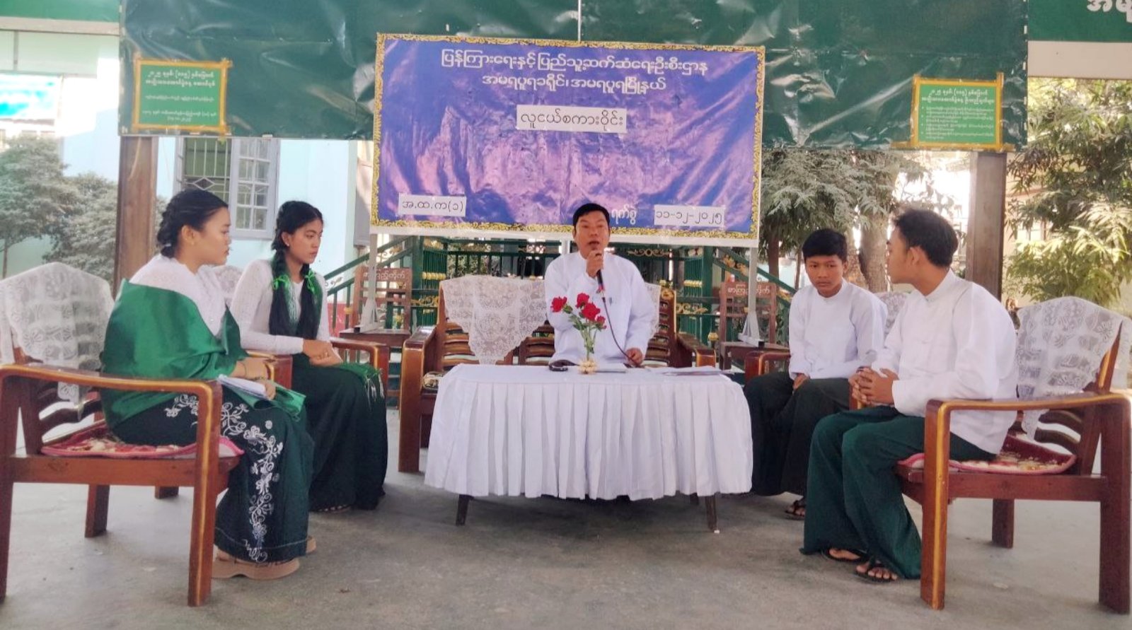 ဆက်လက်ပြီး လူငယ်စကားဝိုင်းဆွေးနွေးပွဲတွင် အမှတ် (၁) အခြေခံပညာ အထက်တန်းကျောင်းမှ Grade-10 ကျောင်းသား မောင်ပြည့်ဖြိုးဇော်က ငြိမ်းချမ်းသောပြည်ထောင်စုဆီသို့ ခေါင်းစဉ်ဖြင့် လည်းကောင်း၊ Grade-10 ကျောင်းသူ မရွှန်းလဲ့ဝေက ကြည်ညိုလေးစားရပါသောမြတ်ဆရာ ခေါင်းစဉ်ဖြင့် လည်းကောင်း၊ Grade-11 ကျောင်းသား မောင်အောင်ကိုဇင်က လူငယ်နှင့်ခေါင်းဆောင်မှု ခေါင်းစဉ်ဖြင့်လည်းကောင်း၊ Grade-11 ကျောင်းသူ မမေဘွဲ့မှူးက လူငယ်နှင့်စာဖတ်ခြင်း ခေါင်းစဉ်ဖြင့်လည်းကောင်း ဦးဆောင်ဆွေးနွေးခဲ့ကြပြီး တက်ရောက်လာကြသည့် ကျောင်းသား၊ ကျောင်းသူများက သိရှိလိုသည်များကို မေးမြန်းကြရာ ပြန်ကြားရေးနှင့်ပြည်သူ့ဆက်ဆံရေးဦးစီးဌာနမှ မြို့နယ်ဦးစီးမှူး ဦးမျိုးမင်းနှင့် လူငယ်စကားဝိုင်းဆွေးနွေးပွဲမှ ကျောင်းသား၊ ကျောင်းသူလေးများက ပြန်လည် ဖြေကြားဆွေးနွေးခဲ့ကြောင်း သိရသည်။