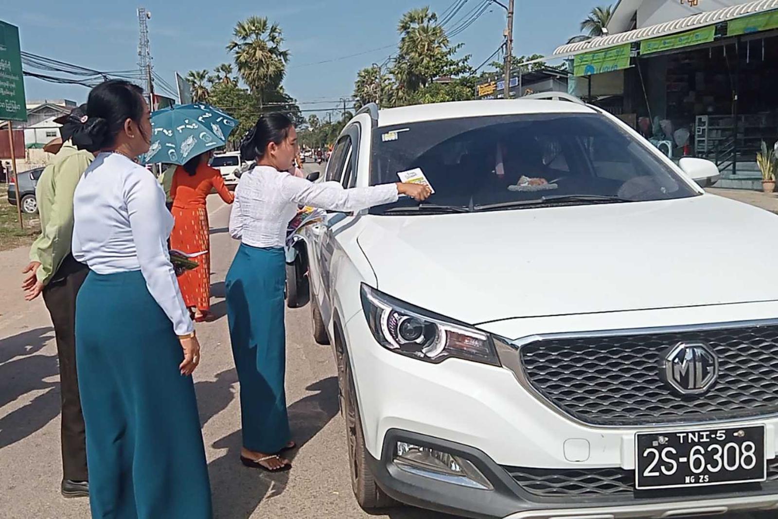 တနင်္သာရီတိုင်းဒေသကြီး၊ ထားဝယ်မြို့၌ ၂၀၂၅ ခုနှစ် ဒီဇင်ဘာ(၂၈)ရက်နေ့တွင် ကျင်းပမည့် ပါတီစုံဒီမိုကရေစီအထွေထွေ ရွေးကောက်ပွဲကိုမဲပေးပိုင်ခွင့်ရှိသူ မဲဆန္ဒရှင်ပြည်သူများအားလုံး ပါဝင်ဆန္ဒမဲပေးနိုင်ရေးအတွက် ဌာနဆိုင်ရာဝန်ထမ်းများက “ဒို့အတူတူမဲပေးကြမယ်” သတင်းစကားလက်ကမ်းစာစောင်များကို ဒီဇင်ဘာ ၁၁ ရက်နေ့က ကမြောကင်းလမ်း ဆန်းချီလမ်းဆုံ၌ ပြည်သူများအား လက်ဝယ်အရောက် ဝေငှပေးသည်။