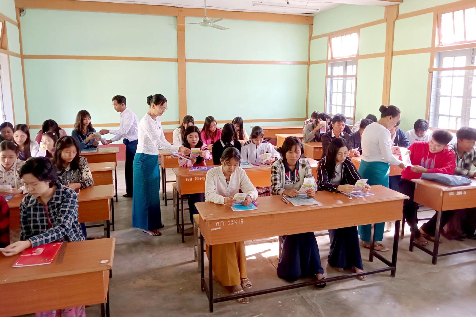 ထိုသို့ဖြန့်ဝေရာတွင် ပြည်သူများလိုလားသည့် ဒီမိုကရေစီနိုင်ငံတော်ကို ရွေးကောက်ပွဲဖြင့်သာ ဖော်ဆောင်နိုင်မည်ဖြစ်ရာ ရွေးကောက်ပွဲဆိုင်ရာများကို ကျယ်ကျယ်ပြန့်ပြန့်သိရှိပြီး ပြည်သူများ ပိုမိုပါဝင်မဲပေးနိုင်ရန်အတွက် မြို့နယ်ပြန်ကြားရေးနှင့်ပြည်သူ့ဆက်ဆံရေးဦးစီးဌာန ဝန်ထမ်းများက အစိုးရစက်မှုလက်မှု သိပ္ပံ(ရေနံချောင်း)တွင် ပညာသင်ကြားနေသော ကျောင်းသားကျောင်းသူများနှင့် လူဝင်မှုကြီးကြပ်ရေးနှင့်ပြည်သူ့အင်အားဝန်ကြီးဌာန မြို့နယ်ဦးစီးမှူးရုံးတို့တွင် “ဒို့အတူတူမဲပေးကြမယ်” ရွေးကောက်ပွဲလှုံ့ဆော်ရေး အသိပညာပေး လက်ကမ်းစာစောင်များကို ဖြန့်ဝေပေးခဲ့ကြောင်း သိရသည်။