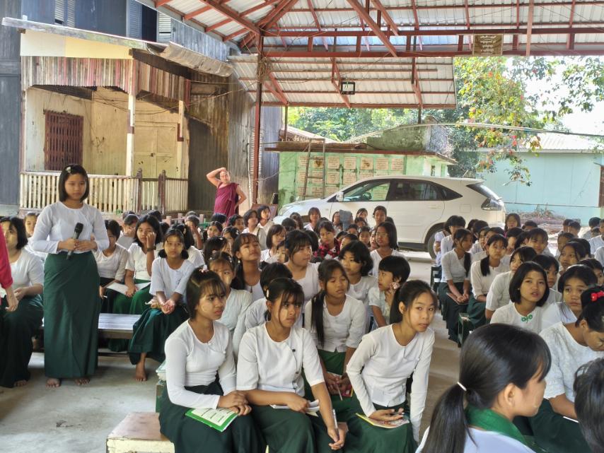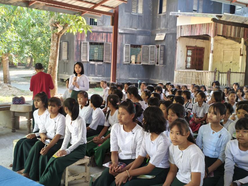 ဆက်လက်၍ စကားဝိုင်းကို ကျင်းပပြုလုပ်ခဲ့ရာ Grade-8 မှ မောင်ကောင်းခန့်ကျော်က “လူငယ်နှင့်မူးယစ်ဆေးဝါးခေါင်းစဉ်ဖြင့်လည်းကောင်း၊ Grade-8 မှ မခင်၀တ်မှုံစံက”လူငယ်နှင့်အားကစား”ခေါင်းစဉ်ဖြည့်လည်းကောင်း၊ Grade-8 မှ မခင်ပြည့်ပြည့်အောင်က “လူငယ်နှင့်ယဉ်ကျေးမှု” ခေါင်းစဉ်ဖြင့်လည်းကောင်း၊ Grade-7 မှ မသဇင်သင်းပျံ့လှိုင်က “လူငယ်နှင့်ပညာရေးခေါင်းစဉ်ဖြင့်လည်းကောင်း၊ Grade-6 မှ မဖြူစင်လမင်းထွန်းက လူငယ်နှင့်သဘာ၀ပတ်၀န်းကျင်ခေါင်းစဉ်ဖြင့်လည်းကောင်း အသီးသီး ဆွေးနွေးခဲ့ကြသည်။ ထို့နောက် ကိုယ်လက်ကြံ့ခိုင်မှုလေ့ကျင့်ခန်းများ စုပေါင်းပြုလုပ်ခြင်းနှင့် အားကစားအထောက်အကူပြုပစ္စည်းများ ပေးအပ်ထောက်ပံ့ခဲ့ပြီး ကျောင်းအုပ်ဆရာမကြီး ဒေါ်ခင်သန်းမြင့်မှ ကျေးဇူးတင်စကားပြောကြားကာ အခမ်းအနားကို ရုပ်သိမ်းခဲ့သည်။ အဆိုပါလူငယ်ရေးရာ အသိပညာပေးဟောပြောပွဲနှင့် လူငယ်စကားဝိုင်းအခမ်းအနားသို့ ကျား-၁၂၄ဦး၊ မ-၁၃၉ဦး၊ စုစုပေါင်း ၂၆၃ ဦး တက်ရောက်ခဲ့ကြောင်း သိရသည်။