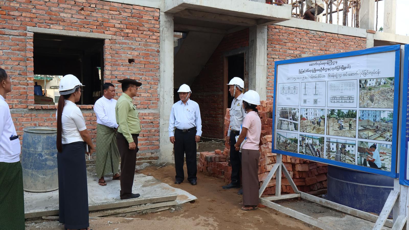 ဆက်လက်၍ ရွှေဘုံသာရပ်ကွက်တွင် မြို့ပြနှင့်အိမ်ရာဖွံ့ဖြိုးရေးဦးစီးဌာနမှ ၂၀၂၅-၂၀၂၆ ဘဏ္ဍာနှစ် တိုင်းဒေသကြီးအစိုးရအဖွဲ့ရန်ပုံငွေဖြင့် ဆောင်ရွက်နေသည့် Lot-7 (၁၅၃ ပေ ×၂၅ ပေ) ဝန်ထမ်းအိမ်ရာ (၆) ခန်းတွဲ (၄) ထပ် အဆောက်အဦတည်ဆောက်ရေးလုပ်ငန်းအား ကြည့်ရှုစစ်ဆေးကာ တာဝန်ရှိသူများအား လိုအပ်သည်များ လမ်းညွှန်မှာကြားခဲ့ကြောင်း သိရသည်။