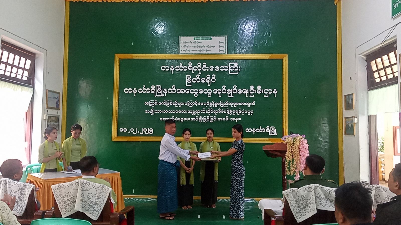 တနင်္သာရီတိုင်းဒေသကြီး တနင်္သာရီမြို့နယ်တွင် ယာယီနေရပ်စွန့်ခွာပြည်သူများအတွက် အမျိုးသားသဘာဝဘေးအန္တရာယ်ဆိုင်ရာ စီမံခန့်ခွဲမှုရန်ပုံငွေမှ ချီးမြှင့်ငွေပေးအပ်ခြင်းအခမ်းအနားကို ယနေ့နံနက်(၁၀)နာရီအချိန်က မြို့နယ်အထွေထွေအုပ်ချုပ်ရေးဦးစီးဌာန အစည်းအဝေးခန်းမ၌ ကျင်းပပြုလုပ်ခဲ့သည်။