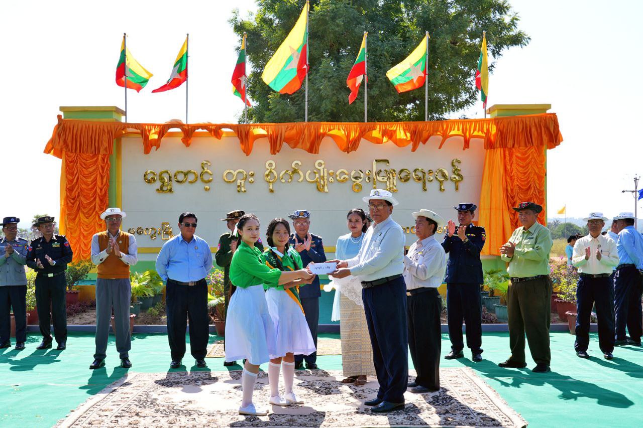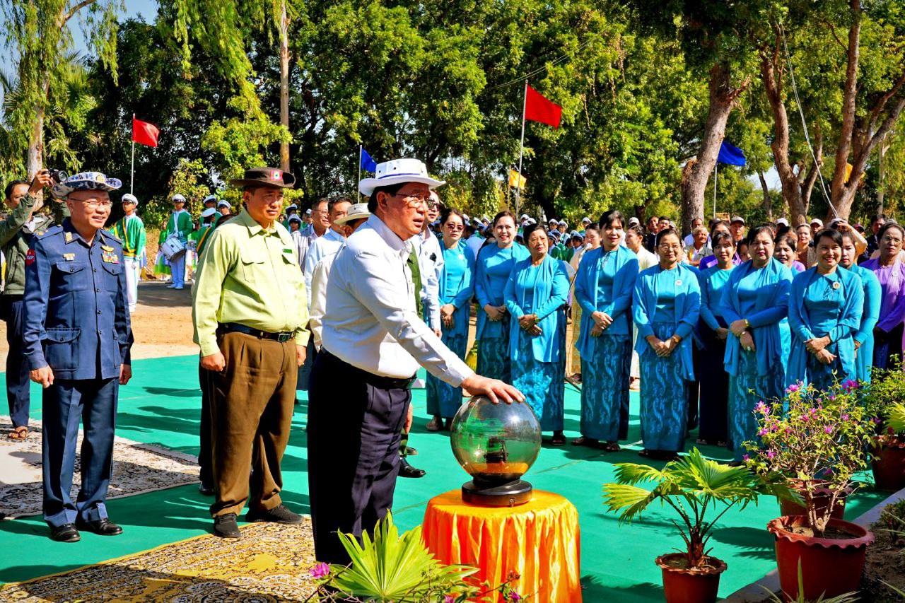 ဆက်လက်၍ အခမ်းအနားအစီအစဉ် ဒုတိယပိုင်းကိုကျင်းပရာ “ ရွှေတင့်တူး” စိုက်ပျိုးမွှေးမြူရေးဇုန်မုဒ်ဦးကို တိုင်းဒေသကြီးဝန်ကြီးချုပ်နှင့် တာဝန်ရှိသူများက ဖဲကြိုးဖြတ်ဖွင့်လှစ်ပေးခဲ့ပြီး ဝန်ကြီးချုပ်မှ ဘင်ခရာနှင့် ပန်းပွားအဖွဲ့များအား ဂုဏ်ပြုဆုငွေများပေးအပ်ချီးမြှင့်ခဲ့သည်။ ဆက်လက်၍ တိုင်းဒေသကြီး ဝန်ကြီးချုပ်က အမှာစကားပြောကြားရာတွင် မကွေးခရိုင်၊ မကွေးမြို့နယ်၊ ရှားပင်လှ ကျေးရွာအုပ်စုအတွင်း (၁၀) နှစ်ကျော် သီးနှံစိုက်ပျိုးခြင်းမပြုဘဲ မြေလွတ်မြေရိုင်းပုံစံဖြစ်နေသည့် မြေဧရိယာများကို စနစ်ကျလယ်ယာမြေ ဖော်ထုတ်ဆောင်ရွက်ခဲ့ကြောင်း ယခုအခါ “ရွှေတင့်တူး” စိုက်ပျိုးမွှေးမြူရေးဇုန် ပထမအဆင့် (၁၅၁.၅၈)ဧက ဖော်ထုတ်လျက်ရှိပြီး ထပ်မံတိုးချဲ့လျာထား(၂၀၆.၆၂)ဧက စုစုပေါင်း(၃၅၈.၂၀)ဧက ဖော်ထုတ်စိုက်ပျိုးသွားမှာ ဖြစ်ကြောင်း စနစ်တကျ လယ်ယာမြေဖော်ထုတ်ခြင်းအားဖြင့် စက်စွမ်းအားပြည့် အသုံးပြုနိုင်ရန် လုံလောက်သည့် အကျယ်အဝန်းရှိခြင်း၊ ညီညာပြန့်ဖြူးခြင်း၊ ထောင်မှန်စတုဂံပုံရှိပြီး အလျားအနံအချိုး(၃:၁)ဖြစ်ခြင်း၊ ကုန်ထုတ် လမ်းပါရှိခြင်း၊ ရေသွင်းရေနုတ်မြောင်းပါရှိခြင်း၊ ကန်သင်းများကောင်းမွန်ခြင်းစသည့် အင်္ဂါရပ်များနှင့်ပြည့်စုံပြီး ကုန်ထုတ်လုပ်မှုစရိတ် လျော့ချနိုင်ကာ သီးနှံအထွက်တိုးစေပြီး အလေအလွှင့်နည်းပါးသည့်အတွက် သာမာရိုးကျ လယ်ယာမြေတွင် စိုက်ပျိုးသည့် သီးနှံများထက် အမြတ်အစွန်း ပိုမိုရရှိစေမှာဖြစ်ကြောင်း ၂၀၂၅-၂၀၂၆ခုနှစ်တွင် မိုးစပါးစိုက်ပျိုးထားရှိမှုအနေဖြင့် အောင်နိုင်တိုးစပါးမျိုး(၁၈.၂၅)ဧက စတင်စိုက်ပျိုး အောင်မြင် ဖြစ်ထွန်းနေတာ တွေ့ရှိရမှာဖြစ်ကြောင်း၊ သီးထပ်စွမ်းအားတိုးတက်လာစေရေးအတွက် တစ်နှစ်လျှင် ၃သီးရအောင် စိုက်ပျိုးပြီး သီးနှံစိုက်စွမ်းအား ၃၀၀ရာခိုင်နှုန်းရရှိရေး ကြိုးပမ်းဆောင်ရွက်သွားရန် လုပ်ပိုင်ခွင့်ရ တောင်သူများ၊ လုပ်ငန်းရှင်များ၊ ဌာနဝန်ထမ်းများအား အထူးတိုက်တွန်း မှာကြားလိုကြောင်း၊ ထို့ပြင် မွေးမြူရေးလုပ်ငန်းများနှင့် ပတ်သက်၍ ကျေးလက်နေပြည်သူများ၏ စီးပွားရေးဖွံ့ဖြိုးတိုးတက်စေရန် တစ်ပိုင်တစ်နိုင်မွေးမြူရေးမှ စီးပွားဖြစ်တိုးချဲ့ မွေးမြူနိုင်ရေး၊ ဒေသဝမ်းစာဖူလုံရေးအတွက် လျာထားဆောင်ရွက်ခဲ့ကြောင်း ဒေသအတွင်း အသား၊ ဥထုတ်လုပ်မှု၊ စားသုံးမှု ဖူလုံပြီး ပိုလျှံသည်များကို တင်ပို့နိုင်စေရန်အတွက် မွေးမြူရေးလုပ်ငန်းများဖွံ့ဖြိုးတိုးက်လာစေရန် ဒေသအလိုက် အလားအလာရှိသော တိရိစ္ဆာန်အမျိုးအစားများအလိုက် စံပြပုဂ္ဂလိက မွေးမြူရေးလုပ်ငန်းအဖြစ် တိုးချဲ့မွေးမြူထုတ်လုပ်နိုင်စေရန် စီမံချက်များ ရေးဆွဲဆောင်ရွက်ခဲ့ကြောင်း၊ ဥစားကြ