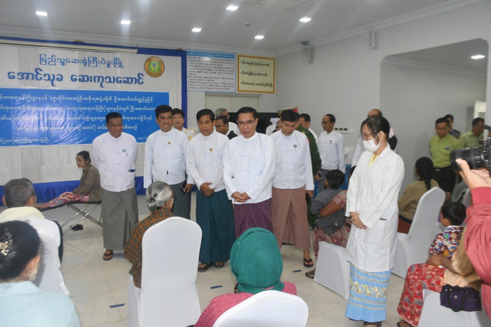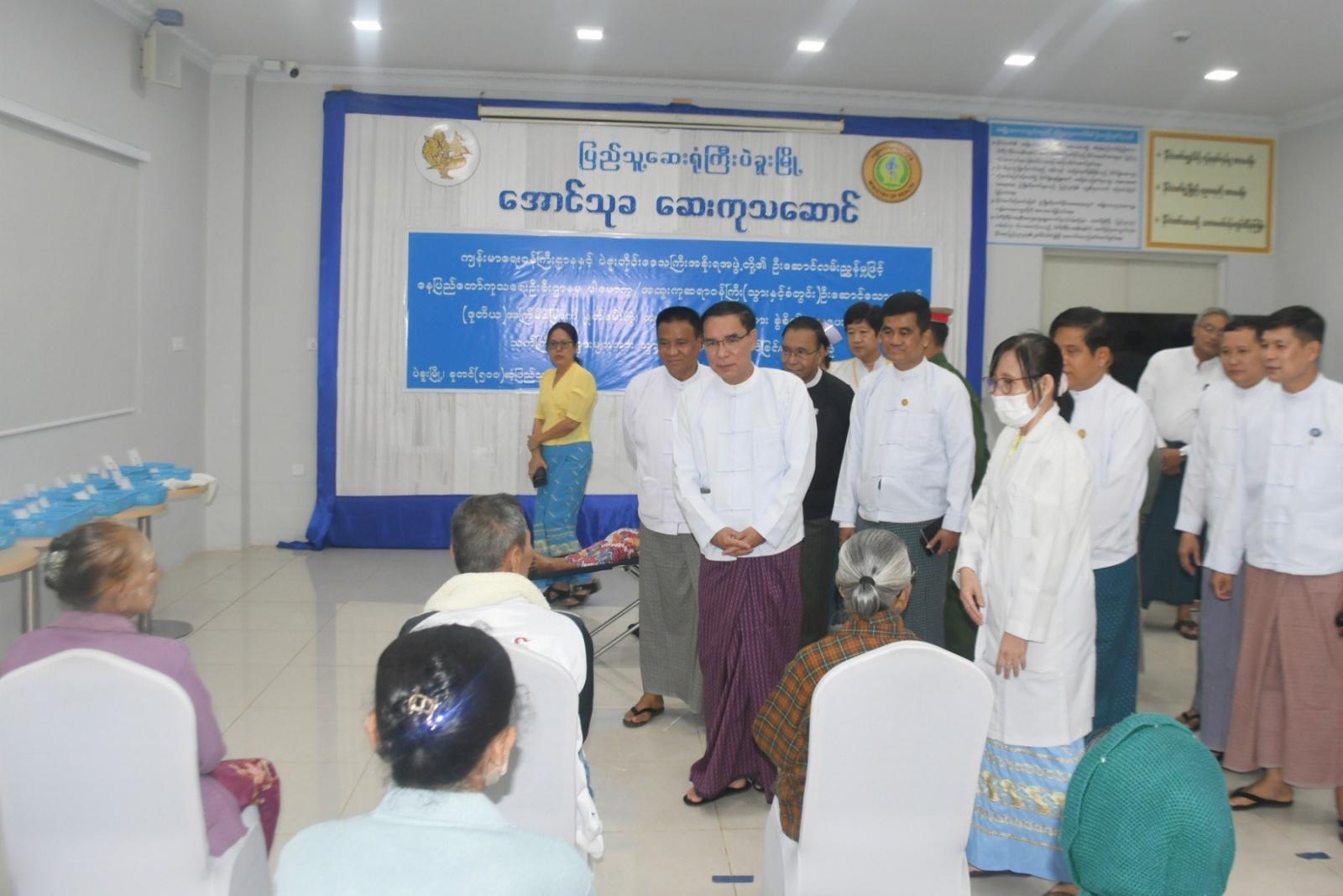 ရှေးဦးစွာ ပဲခူးတိုင်းဒေသကြီး ဝန်ကြီးချုပ် ဦးမျိုးဆွေဝင်းသည် သက်ကြီးဘိုးဘွားများအား သွားတု (အံကပ်) တပ်ဆင်ပေးခြင်းနှင့် နှုတ်ခမ်းကွဲ၊ အာခေါင်ကွဲလူနာများအား ခွဲစိတ်ကုသပြီးစီးသည့် ကလေးငယ်များအား လက်ဆောင်ပစ္စည်းများပေးအပ်ခဲ့သည်။ ၎င်းနောက် ပဲခူးတိုင်းဒေသကြီး ဝန်ကြီးချုပ် ဦးမျိုးဆွေဝင်းသည် အစိုးရအဖွဲ့ဝန်ကြီးများ၊ ပဲခူးတိုင်းဒေသကြီး ပြည်သူ့ကျန်းမာရေးနှင့်ကုသရေးဦးစီးဌာနမှူး ဒေါက်တာဇော်မင်းထွန်း၊ ဆေးရုံအုပ်ကြီး ဒေါက်တာဇော်လွင်တို့နှင့်အတူ ခွဲစိတ်ပြီးလူနာများနှင့် သွားတု (အံကပ်) တပ်ဆင်ပြီးစီးခဲ့သည့် သက်ကြီးဘိုးဘွားများအား ရင်းရင်းနှီးနှီး လိုက်လံနှုတ်ဆက်အားပေးစကားပြောကြားခဲ့သည်။