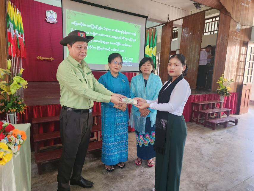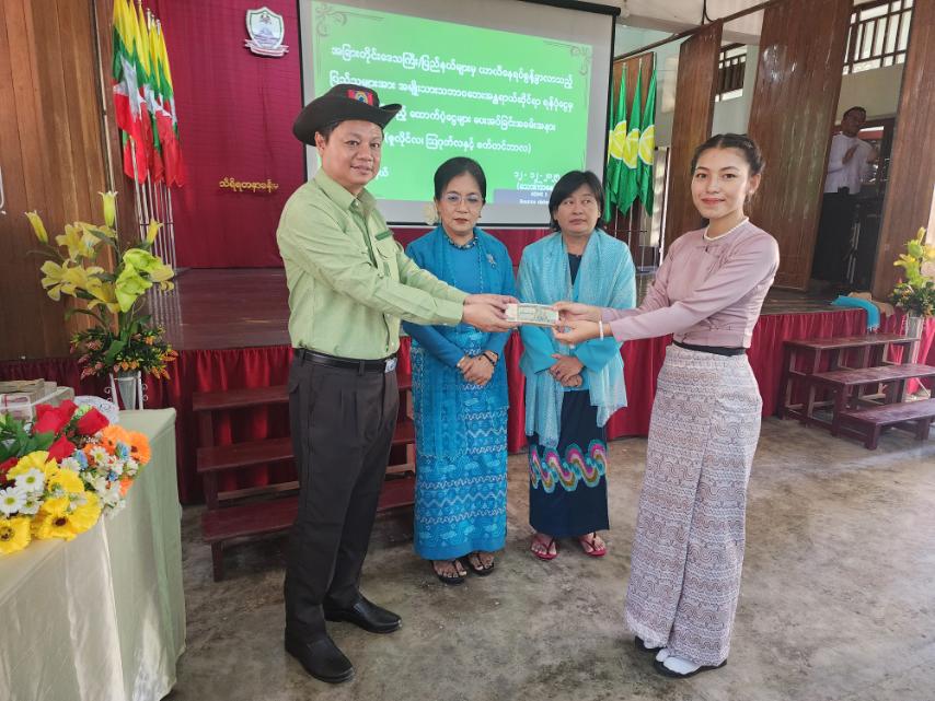 အလုံမြို့နယ်၊ စောရန်ပိုင်တောင်ရပ်ကွက်၊ မင်းရဲကျော်စွာလမ်း၊ ဟားခါးပညာရေးဒီဂရီကောလိပ်ရှိ သီရိရတနာခန်းမ၌ ယနေ့နံနက်ပိုင်းက နေရပ်စွန့်ခွာပြည်သူများအား ထောက်ပံ့ငွေများ ပေးအပ်ခဲ့သည်။