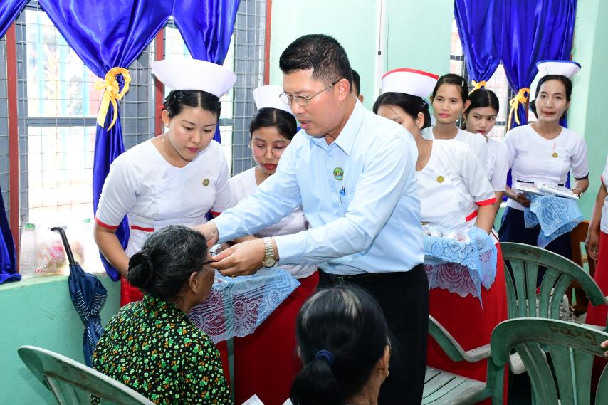 ထို့နောက် တိုင်းဒေသကြီးဝန်ကြီးနှင့်အဖွဲ့သည် ရေကြည်မြို့နယ်ပြည်သူ့ဆေးရုံသို့သွားရောက်၍ ခွဲစိတ်ပြီးစီးသည့်မျက်စိဝေဒနာရှင်များအား ပြန်လည်စမ်းသပ်ခြင်းအား ကြည့်ရှုအားပေးပြီးနောက် ရေကြည်မြို့နယ်ပြည်သူ့ကျန်းမာရေးမာရေးဦးစီးဌာန၊ အစည်းအဝေးခန်းမတွင် ပြုလုပ်သည့် ကျန်းမာရေးဝန်ကြီးဌာန၏ ဦးဆောင်လမ်းညွှန်မှုဧရာဝတီတိုင်း ဒေသကြီးအစိုးရအဖွဲ့၏ အနီးကပ်ကြီး ကြပ်မှုဖြင့် မျက်စိခွဲစိတ်သည့်လူနာများအား ပြန်လည်စမ်းသပ်ခြင်းနှင့် မျက်မှန်တပ်ဆင်ခြင်း အခမ်းအနားသို့တက်ရောက်၍ တိုင်းဒေသကြီးဝန်ကြီးချုပ်က “မျက်စိနှင့်ပတ်သက်သည့် ဝေဒနာရှင်များအား ပြည်သူ့ဆေးရုံအသီးသီးတွင် ခွဲစိတ်ကုသပေးခြင်းအပြင် ဒေသခံဆရာတော် ကြီးများ၊ စေတနာရှင်အလှုရှင်အသီးသီးကလည်း တိုင်းဒေသကြီး၏ နေရာဒေသအသီးသီးတွင်လည်း နှစ်စဉ်ကုသပေးလျက်ရှိပါကြောင်း၊ ရေကြည်မြို့နယ်တွင်လည်း မျက်စိခွဲစိတ်ကုသခြင်းများကို ကျန်းမာရေဝန်ကြီးဌာန၏ဦးဆောင်လမ်းညွှန်မှု ဧရာဝတီတိုင်းဒေသကြီးအစိုးရအဖွဲ့၏ အနီးကပ်ကြီးကြပ်မှုဖြင့် ကျန်းမာရေးဝန်ကြီးဌာနမှမျက်စိအထူးကုဆရာဝန်ကြီးများနှင့် ဧရာဝတီတိုင်းဒေသကြီး ကုသရေးဦးစီးဌာနလက်အောက်ရှိ ပြည်သူ့ဆေးရုံများမှ မျက်စိအထူးကု ဆရာဝန်ကြီးများက လာရောက်ကုသပေးခဲ့ရာ အလှူရှင်အသီးသီးကလည်း ဝိုင်းဝန်းပံ့ပိုး ကူညီဆောင်ရွက်ခဲ့ပြီး အောင်မြင်စွာခွဲစိတ်ကုသပေးနိုင်ခဲ့ပါကြောင်း၊ ယနေ့တွင် မျက်စိခွဲစိတ် သည့်လူနာများအား ပြန်လည်စမ်းသပ်ခြင်းနှင့် မျက်မှန်တပ်ဆင်ပေးခြင်းဖြစ်ပါကြောင်း၊ မျက်မှန်တပ် ဆင်သူများအနေဖြင့် မျက်မှန်တပ်ဆင်ရာတွင် အခက်အခဲများရှိပါက ပြန်လည်ပြောကြား ပေးစေလိုကြောင်း၊ မျက်စိဝေဒနာရှင်များသည်လည်း ရှိနေအုံးမည်ဖြစ်၍ မျက်စိစမ်းသပ်ခွဲ စိတ်ခြင်းများကို ရေကြည်မြို့နယ်အတွင်းသာမက တိုင်းဒေသကြီးအတွင်းရှိ အခြားသောနေ ရာများတွင်လည်း ဆက်လက်စမ်းသပ်ခွဲစိတ်ကုသခြင်းများကို ဆောင်ရွက်ပေးသွားမည် ဖြစ်ပါကြောင်း” ပြောကြားပြီး တိုင်းဒေသကြီးဝန်ကြီးချုပ်သည် အစိုးရအဖွဲ့ဝင် ဝန်ကြီးများနှင့်အတူ မျက်မှန်များတပ်ဆင်ပေးခဲ့သည်။