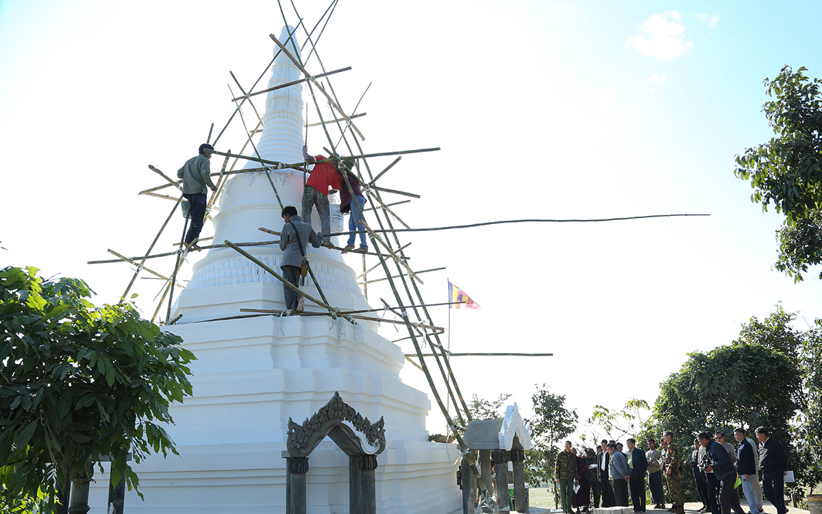 မန္တလေးတိုင်းဒေသကြီး အစိုးရအဖွဲ့ဝန်ကြီးချုပ် ဦးမျိုးအောင်သည် ပြင်ဦးလွင်တပ်နယ်မှူး၊ တပ်မတော်နည်းပညာတက္ကသိုလ် ကျောင်းအုပ်ကြီး၊ တိုင်းဒေသကြီးအစိုးရအဖွဲ့ဝင် လုံခြုံရေးနှင့်နယ်စပ်ရေးရာဝန်ကြီးနှင့် အတွင်းရေးမှူး၊ တပ်နယ်မှတာဝန်ရှိသူများ၊ ခရိုင်/မြို့နယ် စီမံခန့်ခွဲရေးနှင့်အုပ်ချုပ်ရေးကော်မတီဥက္ကဋ္ဌနှင့် အဖွဲ့ဝင်များ၊ ဌာနဆိုင်ရာများမှ တာဝန်ရှိသူများ လိုက်ပါပြီး ယမန်နေ့နံနက်ပိုင်းက ငုက္ခလေးကျေးရွာရှိ ရာဇအောင်မြေစေတီတော် တည်ဆောက်နေမှုနှင့် ထီးတော်တင်လှူနိုင်ရေး လုပ်ငန်းဆောင်ရွက်နေမှုများကို လိုက်လံကြည့်ရှု စစ်ဆေးခဲ့သည်။