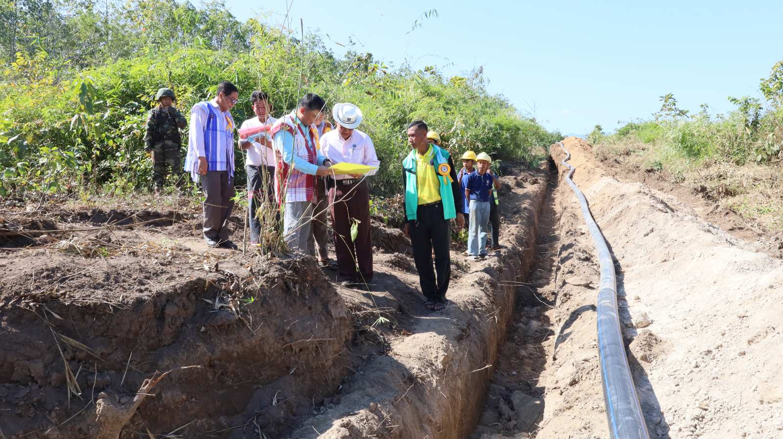 ထို့နောက် ဆက်လက်၍ ကရင်ပြည်နယ်အစိုးရအဖွဲ့ စီးပွားရေးရာဝန်ကြီးနှင့် လမ်းပန်းဆက်သွယ်ရေးဝန်ကြီးတို့က နယ်စပ်ဒေသနှင့်တိုင်းရင်းသားလူမျိုးများဖွံ့ဖြိုးတိုးတက်ရေးဦးစီးဌာန ပြည်နယ်ဖွံ့ဖြိုးမှုကြီးကြပ်ရေးရုံးမှ အကောင်အထည်ဖော်ဆောင်ရွက်လျက်ရှိသည့် မြိုင်ကြီးငူဒေသရှိ ဥယျာဉ်ခြံကျောင်းနှင့် အေးလင်းသာယာကုန်းရှိ စစ်ဘေးရှောင်စခန်း၌နေထိုင်သည့် စစ်ဘေးရှောင်တိုင်းရင်းသားပြည်သူများ သောက်ရေအဆင်ပြေစွာ အသုံးပြုနိုင်ရေးအတွက် ကရင်ပြည်နယ်အစိုးရအဖွဲ့၏ ခွင့်ပြုရန်ပုံငွေကျပ်(တစ်ထောင်သုံးရာနှစ်ဆယ့်ခြောက်သိန်း)ကျော်နှင့် ဒေသခံပြည်သူတို့မှ ပါဝင်ပူးပေါင်းဆောင်ရွက်သည့် ရေရရှိရေးအတွက်(HDPE)ပိုက်လိုင်း အရှည်ပေ(၆၀၀၀)ပေ လုပ်ငန်းဆောင်ရွက်သွယ်တန်းနေမှုအခြေအနေအား သွားရောက်ကွင်းဆင်းကြည့်ရှုစစ်ဆေးခဲ့ကြောင်း သိရသည်။