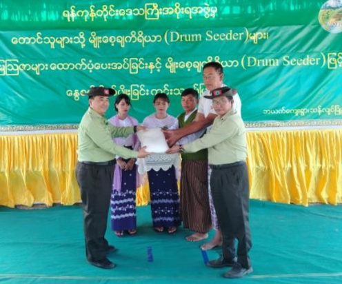 ထို့နောက် နွေစပါးစိုက်ပျိုးမည့် တောင်သူများအား မျိုးစေ့ချကိရိယာနှင့်သွင်းအားစု ဓာတ်မြေဩဇာများကို တိုင်းဒေသကြီးစိုက်ပျိုးရေးဦးစီးမှူး ဦးတင့်နိုင်၊ တိုင်းဒေသကြီး စက်မှုလယ်ယာဦးစီးမှူး ဦးတင်မောင်ကြည်နှင့် သန်လျင်ခရိုင် စီမံခန့်ခွဲရေးနှင့်အုပ်ချုပ်ရေးကော်မတီဥက္ကဋ္ဌ ဦးအောင်သိုက်ဝင်းတို့က အသီးသီးပေးအပ်ခဲ့ကြသည်။