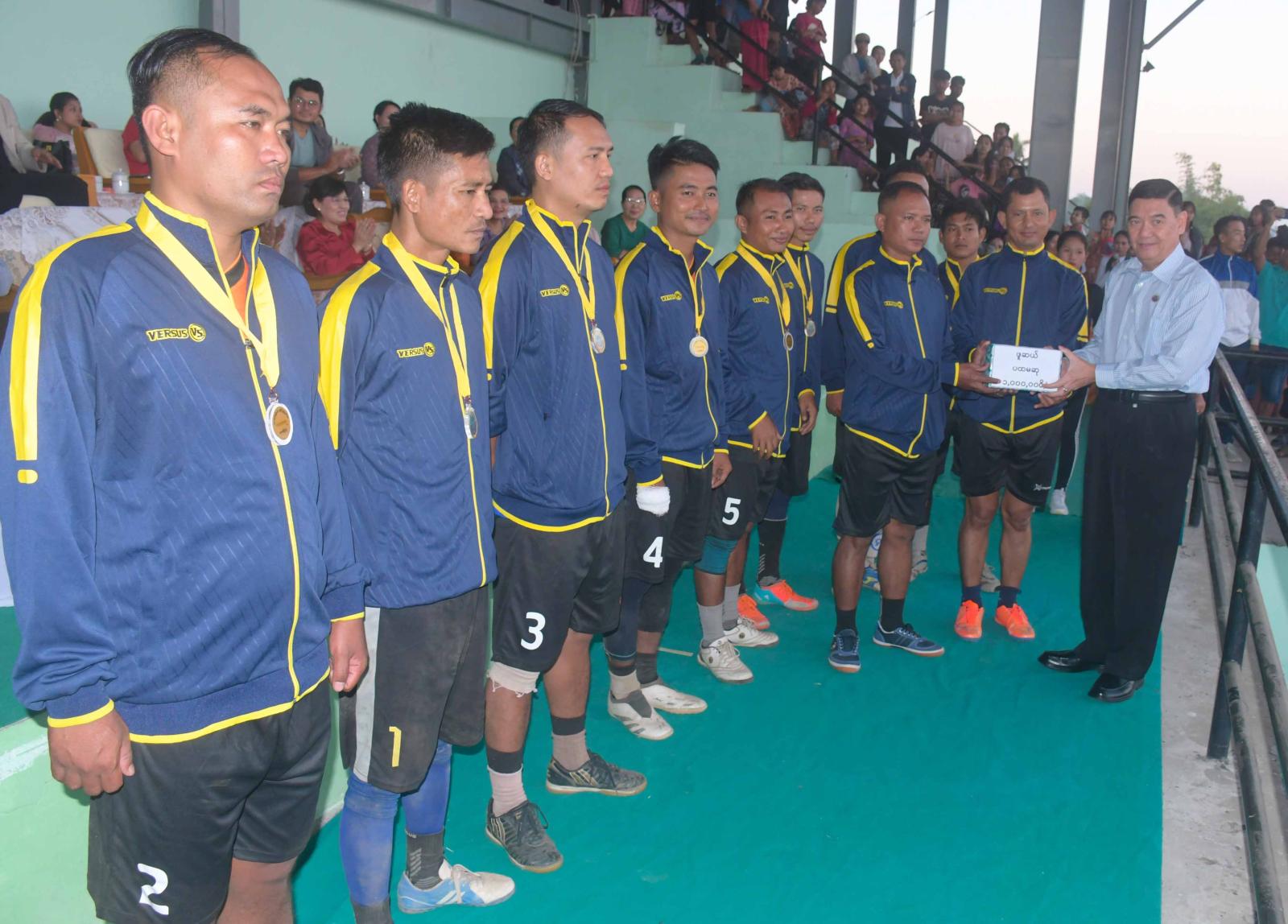 ထို့နောက် ရခိုင်ပြည်နယ်ဝန်ကြီးချုပ် ဦးထိန်လင်းက ဖူဆယ်ပြိုင်ပွဲတွင် ပထမဆုရရှိသော ရခိုင်ပြည်နယ် ရဲတပ်ဖွဲ့အသင်းအား တစ်ဦးချင်းလည်ဆွဲဆုတံဆိပ်နှင့် ငွေသားဆုများကို ပေးအပ်ချီးမြှင့်ခဲ့ကြောင်း သိရသည်။