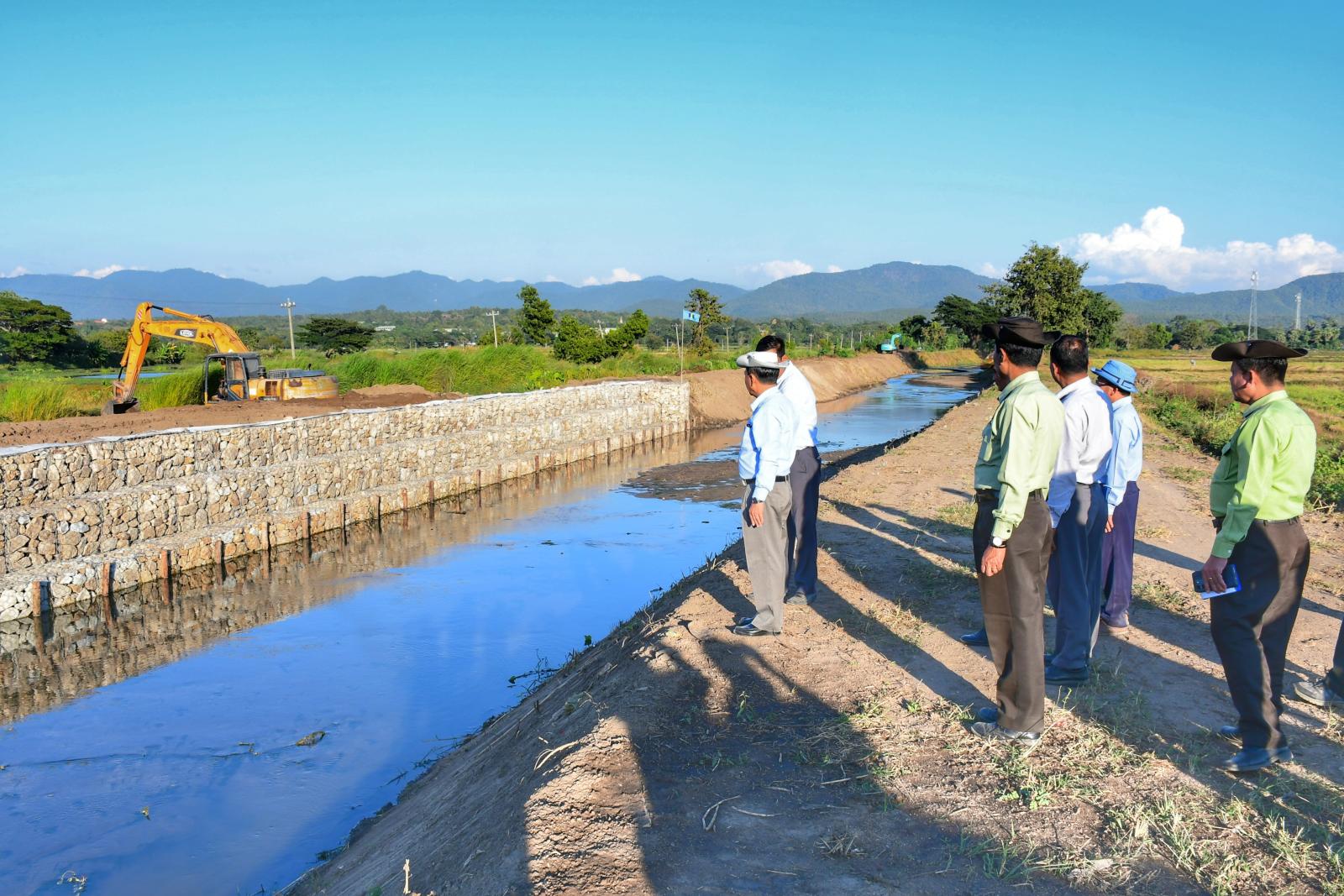 ယင်းနောက် နေပြည်တော်ကောင်စီဥက္ကဋ္ဌ ဦးသန်းထွန်းဦးသည် ဇေယျာသီရိမြို့နယ်၊ သစ်တပ်ကျေးရွာအနီး မပိုက်ကယ်ရိုး ရေနှုတ်မြောင်း ရေစီးရေလာ ကောင်မွန်စေရေး ဆောင်ရွက်ထားရှိမှုနှင့် နေပန်လပန်စနစ်ကျ လယ်ယာမြေအတွင်းရှိ နရဘန်ချောင်းပေါင် အားနည်းသည့်အပိုင်းများအား Gabion Box ကျောက်ဖြည့်မြေထိန်းနံရံ တည်ဆောက်နေမှု အခြေအနေများကို ကြည့်ရှုစစ်ဆေးရာလုပ်ငန်းများ ဆောင်ရွက်နေမှုနှင့် ပတ်သက်၍ တာဝန်ရှိသူများ၏ တင်ပြချက်များအပေါ် နေပြည်တော်ကောင်စီ ဥက္ကဋ္ဌက လုပ်ငန်းများအပိုင်းလိုက် အမြန်ပြီးစီးအောင် ဆောင်ရွက်ရေး၊ ရေရှည်ခိုင်ခံ့မှုရှိအောင် စံချိန်စံညွှန်းနှင့်အညီဆောင်ရွက်ရေး၊ လူအင်အား၊ စက်ယန္တရားအင်းအား တိုးမြှင့်ပြီး လုပ်ငန်းများ အပိုင်းလိုက်အမြန်ပြီးစီးအောင် အင်တိုက်အားတိုက် ဆောင်ရွက်ရန်တို့ကို မှာကြားခဲ့ကြောင်း သိရသည်။