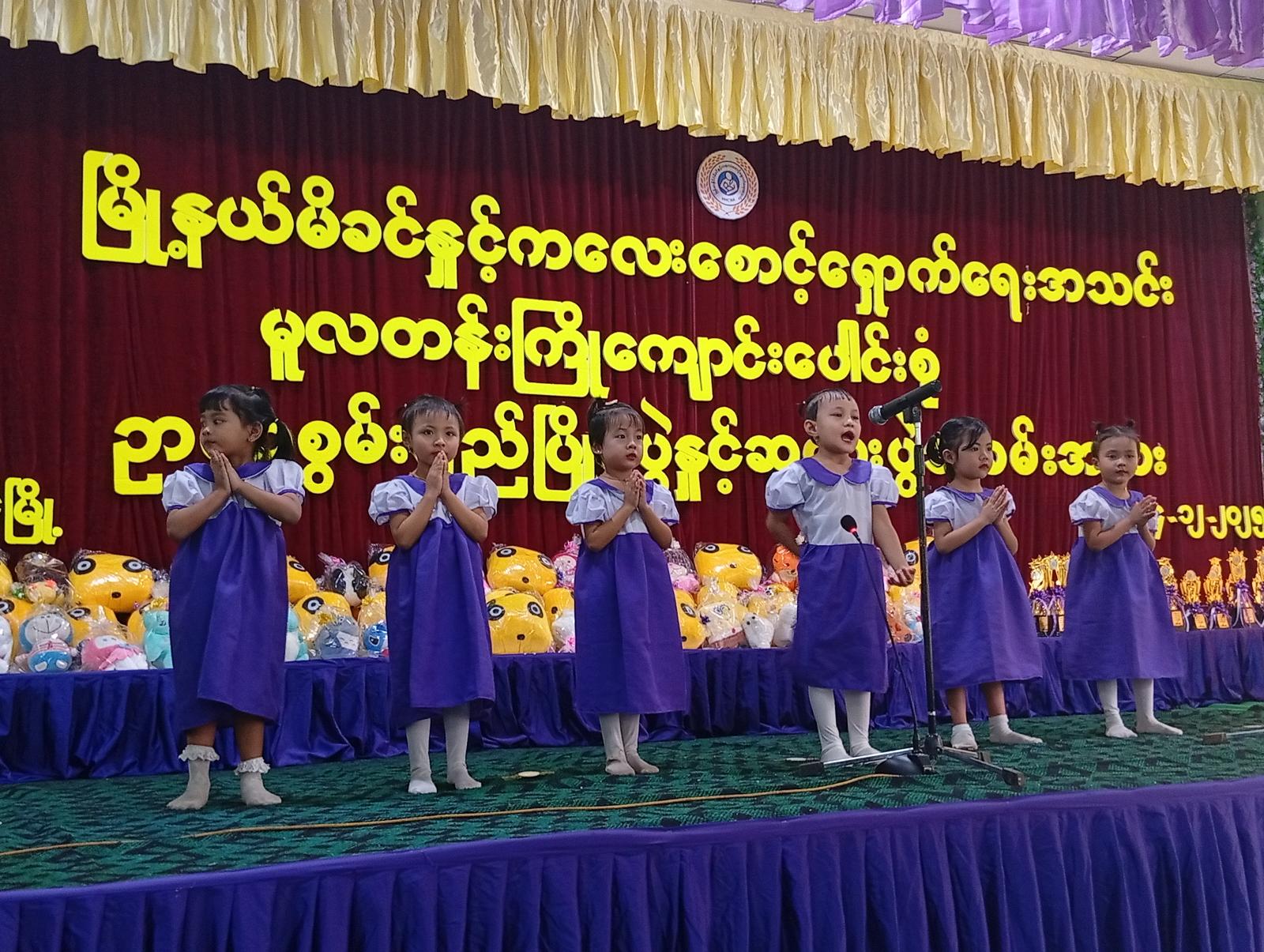 ဆက်လက်၍ မူလတန်းကြိုကျောင်း(၆)ကျောင်းမှ ဆုရရှိသော ရင်သွေးငယ်များအား ပြည်နယ်၊ ခရိုင်၊ မြို့နယ်မိခင်နှင့်ကလေးစောင့်ရှောက်ရေးအသင်းဥက္ကဋ္ဌနှင့် အဖွဲ့ဝင်များ တာဝန်ရှိသူတို့က ဆုများအသီးသီးပေးအပ်ချီးမြှင့်ခဲ့ကြပြီး၊ ရင်သွေးငယ်များအား ဂုဏ်ပြုလက်ဆောင်ပစ္စည်းများ ပေးအပ်ခဲ့သည်။ ထိုနောက် အလှူရှင်တစ်ဦးက ပြိုင်ပွဲဝင်မူလတန်းကြိုကျောင်းများအတွက် အလှူငွေများပးအပ်လှူဒါန်းရာ တာဝန်ရှိသူများက လက်ခံရယူခဲ့ကြကာ မြို့နယ် မိခင်နှင့်ကလေးစောင့်ရှောက်ရေးအသင်း ဥက္ကဋ္ဌ ဒေါ်မြင့်မြင့်သန်းက ကျေးဇူးတင်စကား ပြန်လည်ပြောကြားခဲ့ကြောင်း သိရသည်။