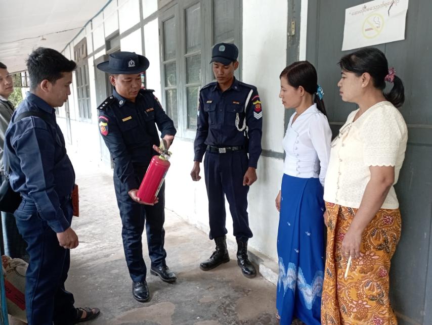 ထိုသို့ ဆောင်ရွက်ရာတွင် မြို့နယ်မီးသတ်ဦးစီးဌာနမှ ဦးစီးမှူး ဦးတင်သောင်းဦးနှင့် သန္ဓေတပ်ဖွဲ့ဝင်များ၊ မြို့နယ်လျှပ်စစ်အင်ဂျင်နီယာရုံးမှ ဝန်ထမ်းများ၊ မြို့နယ်အထွေထွေအုပ်ချုပ်ရေးဦးစီးဌာနက တာဝန်ရှိသူများက မြို့နယ်အခွန်ဦးစီးဌာန၊ စီမံကိန်းဦးစီးဌာန၊ သမဝါယမဦးစီး ဌာနရုံးများသို့ သွားရောက်၍ ဝန်ထမ်းများအား မီးသတ်ဆေးဘူးအသုံးပြုနည်းများ ပြသပေးခြင်း၊ ရုံးပတ်ဝန်းကျင်ကို အမှိုက်များကင်းစင်အောင်ဆောင်ရွက်ထားရန်၊ မီးချိတ်၊ မီးကတ်၊ ရေပုံး၊ သဲပုံးများ၊ ရေကန်များရေဖြည့်ထားရန်နှင့် မီးဘေးလုံခြုံရေးဆိုင်ရာ အကြံပြုချက်များအသိပညာပေးခြင်းတို့ကို ဌာနဆိုင်ရာ တာဝန်ရှိသူများနှင့် ပူးပေါင်းဆောင်ရွက်ခဲ့ကြောင်း သိရသည်။