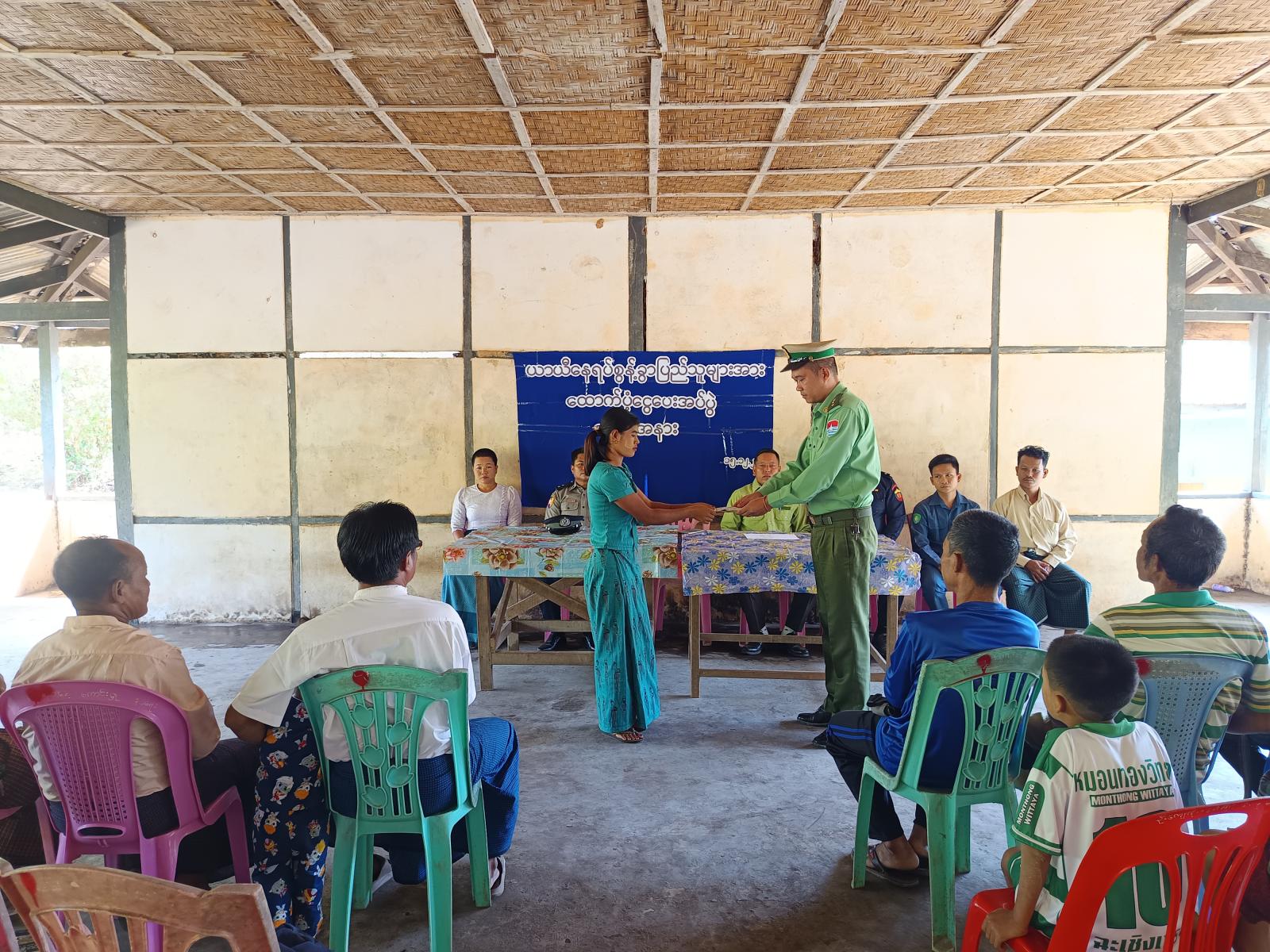 အခမ်းအနားတွင် မြို့အထွေထွေအုပ်ချုပ်ရေးဦးစီးဌာန၊ မြို့အုပ်ချုပ်ရေးမှူး ဦးဇော်မြင့်က အဖွင့်အမှာစကားပြောကြားကာ ယာယီနေရပ်စွန့်ခွာပြည်သူများအား မြို့အုပ်ချုပ်ရေးမှူး ဦးဇော်မြင့်နှင့်အဖွဲ့ဝင်များ၊ နယ်မြေခံတပ် ရင်းမှတာဝန်ရှိသူများ၊ မြို့ဌာနဆိုင်ရာတာဝန်ရှိသူများက ယာယီနေရပ်စွန့်ခွာပြည်သူ ကျား(၁၀)ဦး၊ မ(၆)ဦး၊ ပေါင်း (၁၆)ဦးအား တစ်ဦးလျှင် ၂၀၀၀၀/-ကျပ်နှုန်းဖြင့်(၃၂၀၀၀၀/-) ကျပ်ပေးအပ်ခဲ့သည်။