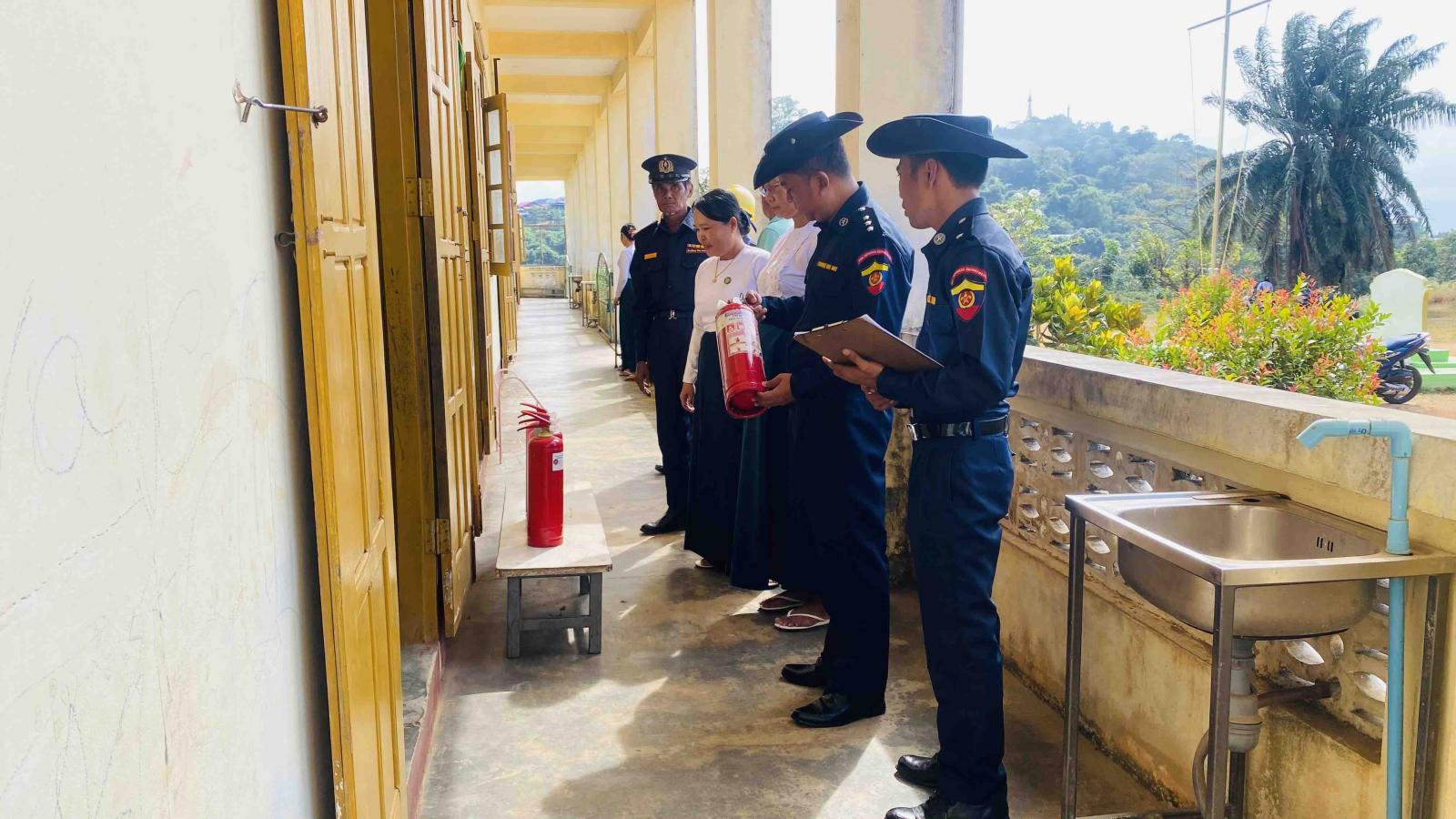 ထိုသို့ဆောင်ရွက်ရာတွင် ကော့သောင်းမြို့နယ်၊ မီးသတ်ဦးစီးမှူး ဦးဆောင်သော တပ်ဖွဲ့ဝင်များ၊ သက်ဆိုင်ရာဌာနအဖွဲ့အစည်းများပူးပေါင်း၍ မဲရုံဖွင့်လှစ်ဆောင်ရွက်မည့် စာသင်ခန်းများနှင့် ကျောင်းဝန်းအတွင်း မီးဘေးလုံခြုံရေးနှင့် ကြိုတင်ကာကွယ်‌ရေး ဆောင်ရွက်ထားရှိမှု အခြေအနေများ၊ မီးသတ်ဆေးဘူးများ တပ်ဆင်ထားရှိမှု‌အ‌ခြေအနေများ စစ်ဆေးခဲ့ပြီး အရေးပေါ်မီးဘေးအန္တရာယ်ဖြစ်ပေါ်ခဲ့ပါက စနစ်တကျ မီးငြှိမ်းသတ်ရမည့် နည်းလမ်းများအား အသိပညာပေးရှင်းလင်း၍ ဇာတ်တိုက်လေ့ကျင့်ခြင်းများ ‌ဆောင်ရွက်ခဲ့ကြကြောင်း သိရသည်။