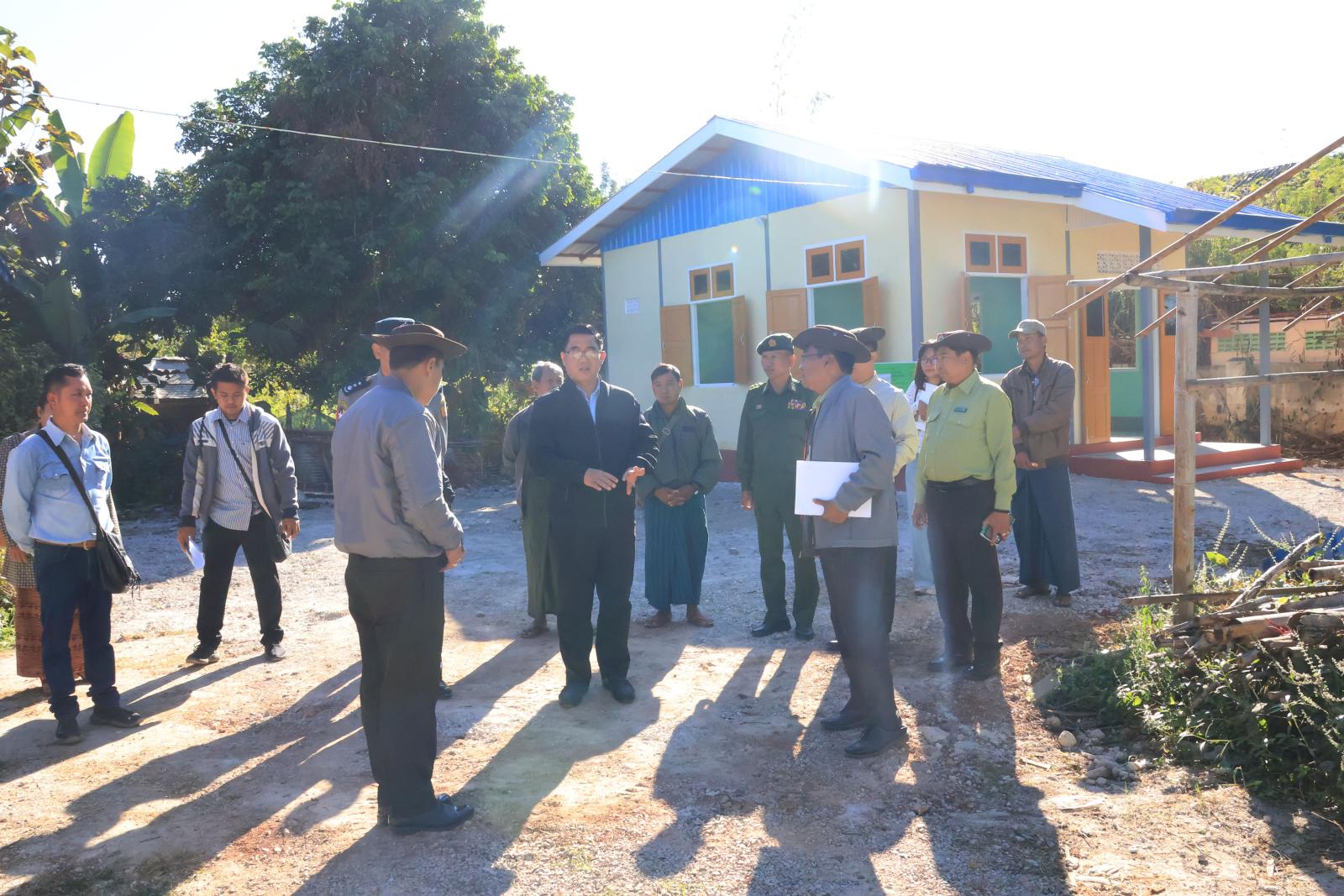 ဆက်လက်၍ ပြည်နယ်ဝန်ကြီးချုပ်နှင့်တာဝန်ရှိသူများသည် နာနတ်တောရပ်ကွက်၊ နောင်ယား(က)နှင့် ဒေါဥခူရပ်ကွက်များသို့ သွားရောက်ပြီး အကြမ်းဖက်သောင်းကျန်းသူများ၏ အကြမ်းဖက်လုပ်ရပ်များကြောင့် နေအိမ်ထိခိုက်ပျက်စီးဆုံးရှုံးခဲ့ကြသည့် ဒေသခံပြည်သူများနှင့် ဝန်ထမ်းများနေထိုင်မှု အဆင်ပြေစေရေးအတွက် တန်ဖိုးသင့်အိမ်ရာများ ဆောက်လုပ်ပြီးစီးမှုနှင့် အပြီးသတ်ဆောင်ရွက်နေမှု အခြေအနေများကို ကြည့်ရှုစစ်ဆေးသည်။ ပြည်နယ်ဝန်ကြီးချုပ်က လုပ်ငန်းများသတ်မှတ်စံညွှန်းများပြည့်မီစွာဖြင့် အမြန်ပြီးစီးအောင်ဆောင်ရွက်ရန်၊ နေအိမ်များဆောက်လုပ်ပြီးပါက သောက်သုံးရေ၊ လျှပ်စစ်မီးရရှိရေး တစ်ပါတည်းဆောင်ရွက်ရန်၊ ရပ်ကွက်အတွင်းရှိ လမ်းများသန့်ရှင်းသာယာရေးဆောင်ရွက်ရန်နှင့် လုပ်ငန်းများအားသတ်မှတ်ကာလအမီပြီးစီးအောင် ဆောင်ရွက်ရန်မှာကြားခဲ့ပြီး နေအိမ်ပိုင်ရှင်များအား ရင်းရင်းနှီးနှီး နှုတ်ဆက်အားပေးစကား ပြောကြားခဲ့ကြောင်း သိရသည်။