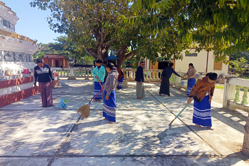 ထိုသို့ဆောင်ရွက်ရာတွင် မြို့နယ်သမဝါယမဦးစီးဌာန ဦးစီးအရာရှိ ဦးညီညီဝင်းနှင့် ဝန်ထမ်းများက ကျောင်းဝင်းအတွင်းနှင့် ဘုရားရင်ပြင်တော်တို့၌ စုပေါင်းသန့်ရှင်းရေးဆောင်ရွက်ပြီး ဝန်ထမ်းများ စုပေါင်းထည့်ဝင်သော အလှူငွေ ကျပ်ငါးသောင်းကို ကျောင်းထိုင်ဆရာတော်ထံ ဆပ်ကပ်လှူဒါန်းခဲ့ကြောင်း သိရသည်။