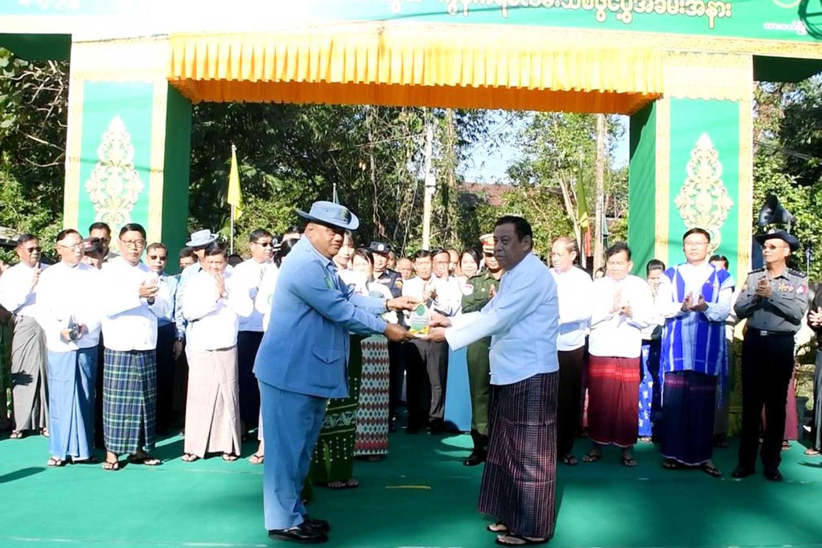 ထို့နောက်တိုင်းဒေသကြီးဝန်ကြီးချုပ်ဦးမြတ်ကို၊ တိုင်းဒေသကြီးလမ်းပန်းဆက်သွယ်ရေးဝန်ကြီး ဦးအောင်ဇော်လှိုင်၊ တိုင်းဒေသကြီးတိုင်းရင်းသားရေးရာဝန်ကြီးဦးစောမာတင်လူသာတို့က ဗျောတောဝရပ်ကွက်၊ မျှော်အင်းလမ်းသွယ် ကွန်ကရစ်လမ်းသစ်အား ဖဲကြိုးဖြတ်ဖွင့်လှစ်ပေးပြီး တိုင်းဒေသကြီးစည်ပင်သာယာရေးအဖွဲ့ ညွှန်ကြားရေးမှူး ဦးသက်လွင်ဦးက တိုင်းဒေသကြီးဝန်ကြီးချုပ်ထံ အထိမ်းအမှတ်လက်ဆောင်ပေးအပ်သည်။