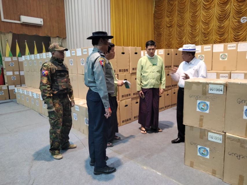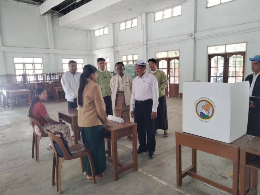 ဆက်လက်၍ တိုင်းဒေသကြီးဝန်ကြီးနှင့်တာဝန်ရှိသူများသည် သင်တောင်းကျေးရွာအုပ်စု၊ မဲရုံအမှတ်(၁)နှင့် မြေကြည်လင်ရပ်ကွက်၊ အထက(၃)၌ ပြုလုပ်ထားသည့် မဲရုံအမှတ်(၁) ခင်းကျင်းပြင်ဆင်ထားရှိမှုကို သွားရောက်၍ မဲရုံဥပဓိရုပ်ကောင်းမွန်မှု ရှိ/မရှိ၊ မဲရုံအတွင်းရှိဆန္ဒပြုခန်း အလင်းရောင်ရရှိရေး ဆိုလာမီးအိမ်များ ပြင်ဆင်ထားရှိရန်၊ မြန်မာအီလက်ထရောနစ် မဲပေးစက် (MEVM)များထားရှိသည့် မြို့တော်ခန်းမ၌ လုံခြုံရေးစုဖွဲ့ထားရှိမှုနှင့် မီးဘေးအန္တရာယ်ကြိုတင် ကာကွယ်ရေးအတွက် ပြင်ဆင်ထားရှိမှုများအား ကြည့်ရှုစစ်ဆေးပြီး လိုအပ်သည်များ လမ်းညွှန်မှာကြားခဲ့ကြောင်း သိရသည်။