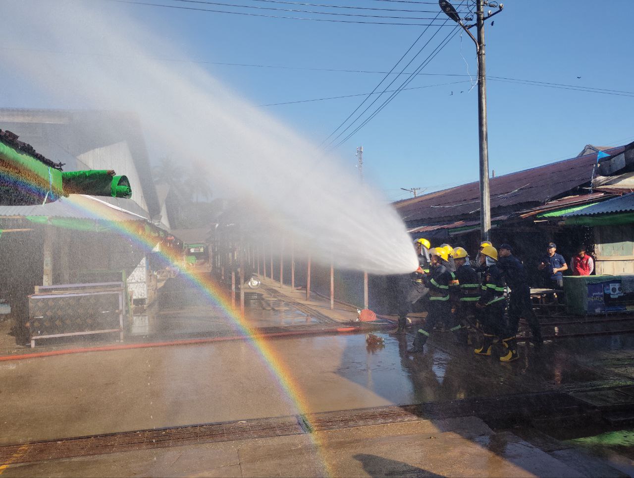 ပွင့်လင်းရာသီရောက်ရှိလာပြီဖြစ်၍ မီးသတိပြုရေး မီးဘေးကြိုတင်ကာကွယ်နိုင်ရေး၊ ဈေးများတွင် မီးဘေးအန္တရာယ်ကင်းဝေးစေရန်နှင့် မီးဘေးအန္တရာယ်ဖြစ်ပွားပါက ဈေးမီးဘေးလုံခြုံရေးအဖွဲ့နဲ့ မီးသတ်တပ်ဖွဲ့မှ အပိုင်းအလိုက်စနစ်တကျထိရောက်စွာ ပူးပေါင်းဆောင်ရွက်နိုင်ရန်ရည်ရွယ်ချက်ဖြင့် မြို့နယ်စီမံခန့်ခွဲရေးနှင့်အုပ်ချုပ်ရေးကော်မတီမှ ဦးဆောင်၍ မြို့နယ်စည်ပင်သာယာရေးအဖွဲ့၊ မြို့နယ်ဈေးကော်မတီအဖွဲ့နှင့် မီးသတ်ဦးစီးဌာနမှ ဈေးအတွင်း မီးငြှိမ်းသတ်ရေးနှင့်ရှာဖွေကယ်ဆယ်ရေး ဇာတ်တိုက်လေ့ကျင့်ခြင်းကို ပဲခူးတိုင်းဒေသကြီး လက်ပံတန်းမြို့နယ် မြို့မဈေးကြီးတွင် ယနေ့နံနက် ၉ နာရီက ဆောင်ရွက်ခဲ့ကြသည်။