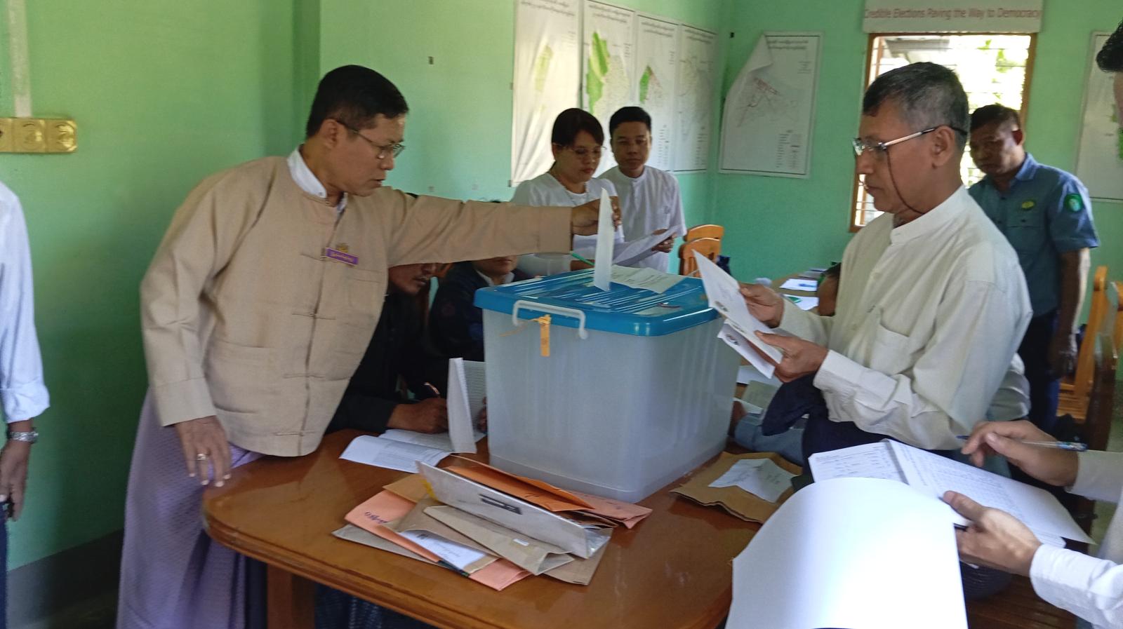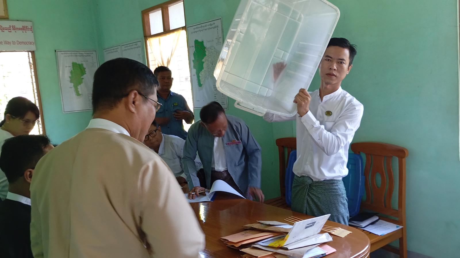 ရှေးဦးစွာ မြို့နယ်ရွေးကောက်ပွဲကော်မရှင်အဖွဲ့ခွဲဥက္ကဋ္ဌ ဦးသိန်းဝင်းက မြို့နယ်ပြင်ပရောက် ကြိုတင်ဆန္ဒမဲလက်မှတ်စာအိတ်များအား မှတ်ပုံတင်ခြင်း၊ ကြိုတင်မဲပုံးထဲသို့ ထည့်သွင်းခြင်းဆောင်ရွက်ရာတွင် လိုက်နာဆောင်ရွက်ရမည့် စည်းကမ်းချက်များအား ရှင်းလင်းပြောကြားသည်။ ထို့နောက် မြို့နယ်ပြင်ပရှိ ကြိုတင်ဆန္ဒမဲပေးထားသည့် ကျောင်းသား၊ ကျောင်းသူများ၊ သင်တန်းသား၊ သင်တန်းသူများ၊ အချုပ်သားများ၏ ကြိုတင်ဆန္ဒမဲ လက်မှတ်စာအိတ်များအား နိုင်ငံရေးပါတီများ၏ကိုယ်စားလှယ်များ ရှေ့မှောက်တွင် ဖွင့်ဖောက်၍ ချိပ်ပိတ်ထားသော မဲပုံးအတွင်းသို့တာဝန်ရှိသူများက ထည့်သွင်းဆောင်ရွက်ခဲ့ကြောင်း သိရသည်။
