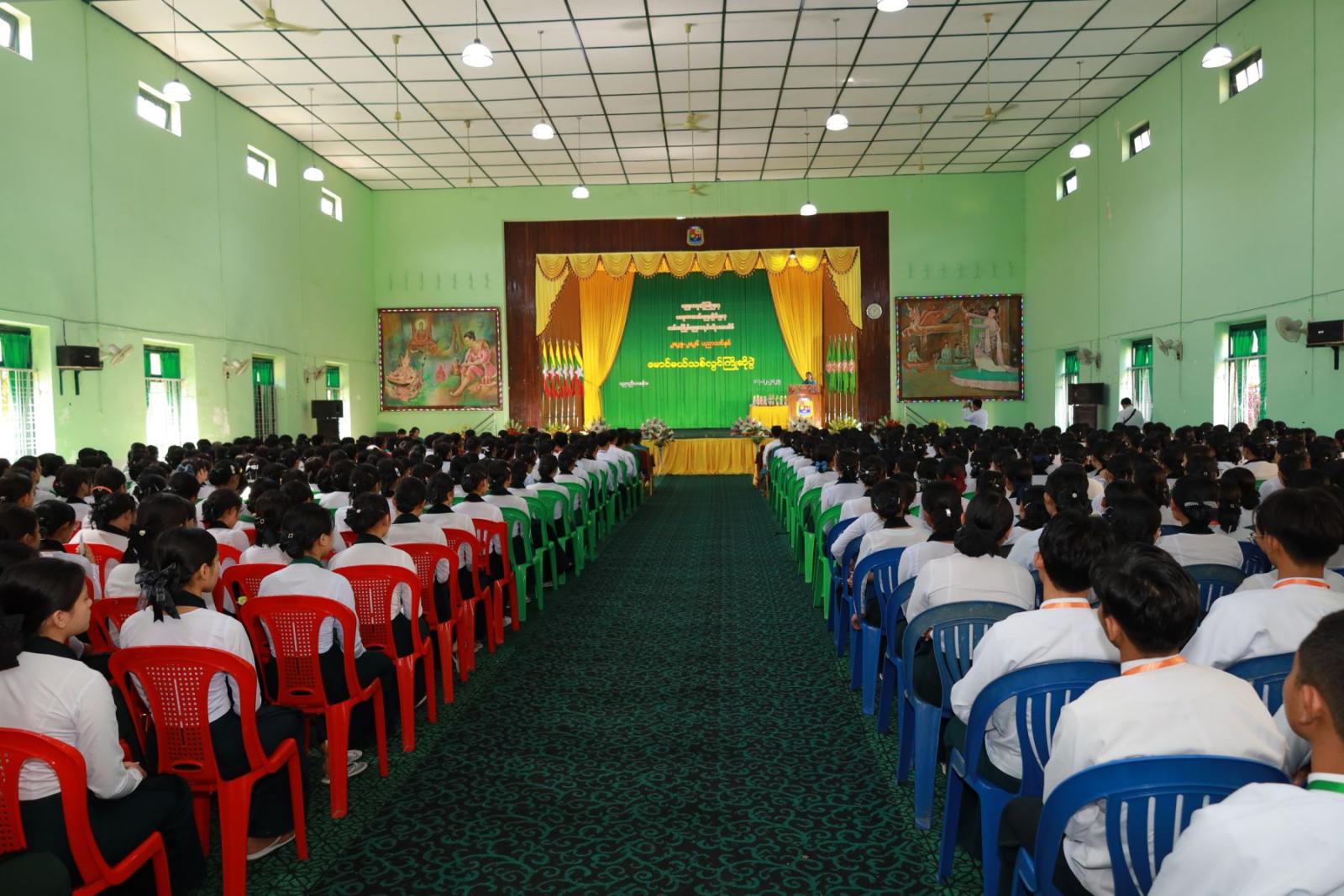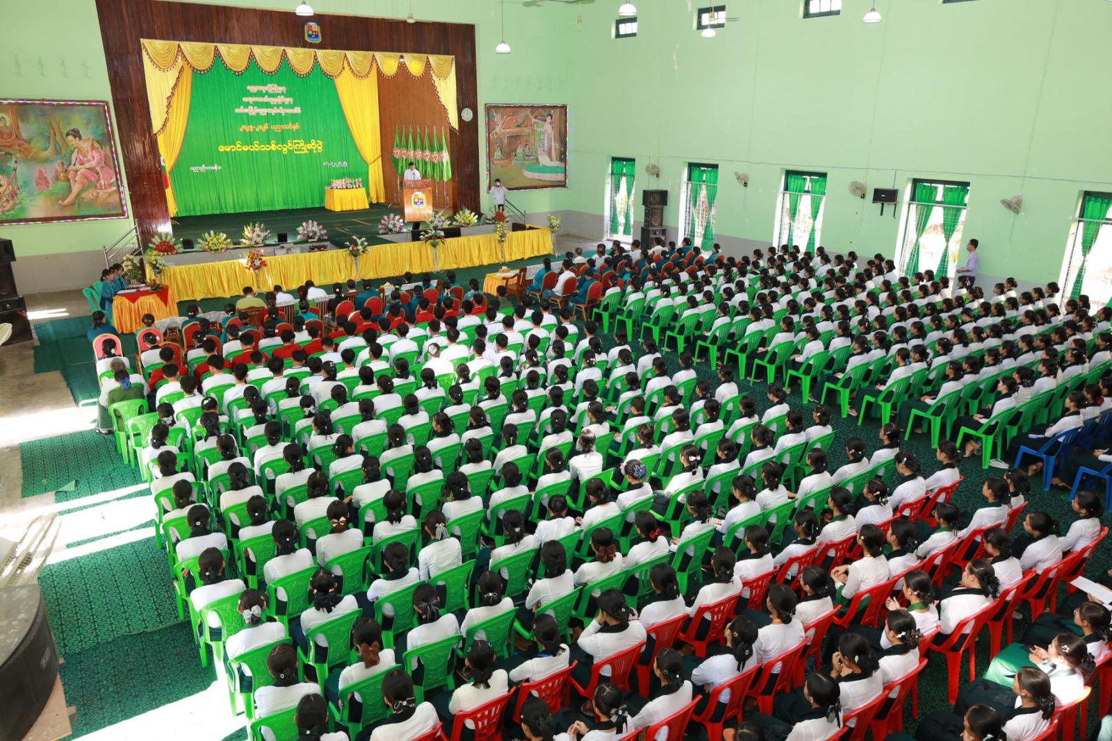 ရှေးဦးစွာ အခမ်းအနားကို သင်တန်းသား၊ သင်တန်းသူများက ဒို့ကျောင်းတော်၏ အနာဂတ်ကြယ်ပွင့်" သီချင်းဖြင့် သီဆိုဖျော်ဖြေခဲ့ကြပြီး ပြည်နယ်ဝန်ကြီးချုပ်က နိုင်ငံတစ်နိုင်ငံရဲ့ ဘက်စုံဖွံ့ဖြိုးတိုးတက်ရေး၊ ခေတ်မီရေးတို့အတွက် ပညာရေးဟာ အခြေခံကျတဲ့အုတ်မြစ်ပဲဖြစ်ပြီး ပညာရေးကဏ္ဍဖွံ့ဖြိုးတိုးတက်ရေးအတွက် တစ်မျိုးသားလုံးကျန်းမာကြံ့ခိုင်ရေးနှင့် ပညာရည်မြင့်မားရေးအတွက် ဦးတည်ကြိုးပမ်း ဆောင်ရွက်လျက်ရှိကြောင်း၊ သစ်လွင်မောင်မယ်များအနေဖြင့် တိုင်းရင်းသားအချင်းချင်း ရင်းနှီးချစ်ကြည်စွာ စုပေါင်းနေထိုင်ရင်း ဆရာကောင်း ဆရာမွန်များ ဖြစ်လာစေရေးအတွက် ဤကျောင်းက သင်ကြားပို့ချချက်များကို နာခံသင်ယူမှတ်သားပြီး နိုင်ငံ့အနာဂတ်သားကောင်း ရတနာများကို လက်ဆင့်ကမ်းမျှဝေနိုင်သူများဖြစ်စေရန် ကြိုးပမ်းဆောင်ရွက်ပေးကြစေလိုကြောင်းဖြင့် အမှာစကားပြောကြားခဲ့သည်။