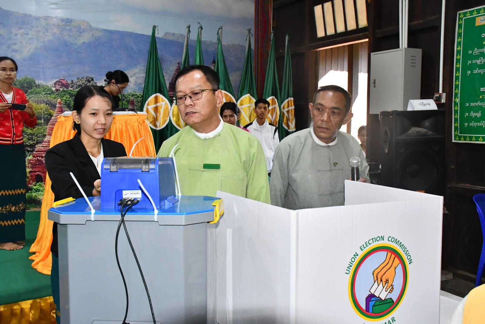 ဦးစွာ ညောင်ဦးခရိုင်စီမံခန့်ခွဲရေးနှင့် အုပ်ချုပ်ရေးကော်မတီဥက္ကဋ္ဌ ဦးကျော်မင်းညိုက မြန်မာအီလက်ထရောနစ်မဲပေးစက်(MEVM)နှင့်စပ်လျဉ်း၍ အဖွင့်အမှာစကားပြောကြားခဲ့သည်။ ထို့နောက် ညောင်ဦးခရိုင် ရွေးကောက်ပွဲကော်မရှင်အဖွဲ့ခွဲ၊ အရာရှိ ဦးနေမျိုးဝင်းက သရုပ်ပြ မဲပေးခြင်းနှင့်ပတ်သက်၍ Power Point ဖြင့်ရှင်းလင်းပြောကြားသည်။ ပြီးနောက် မြန်မာအီလက်ထရောနစ်မဲပေးစက် (MEVM) ဖြင့် လက်တွေ့သရုပ်ပြစမ်းသပ်မဲပေးခြင်း၊ တာဝန်ရှိသူ များက မဲရလဒ်များအား ထုတ်ယူကြည့်ရှုစစ်ဆေးခြင်းများကို သရုပ်ပြသခဲ့ကြောင်း သိရသည်။