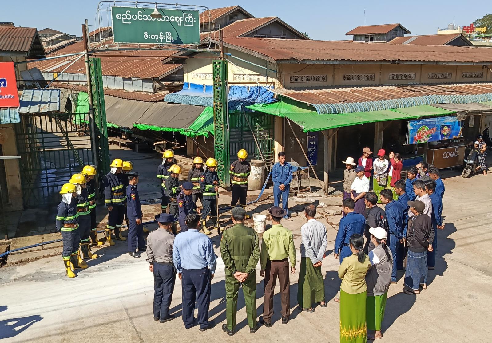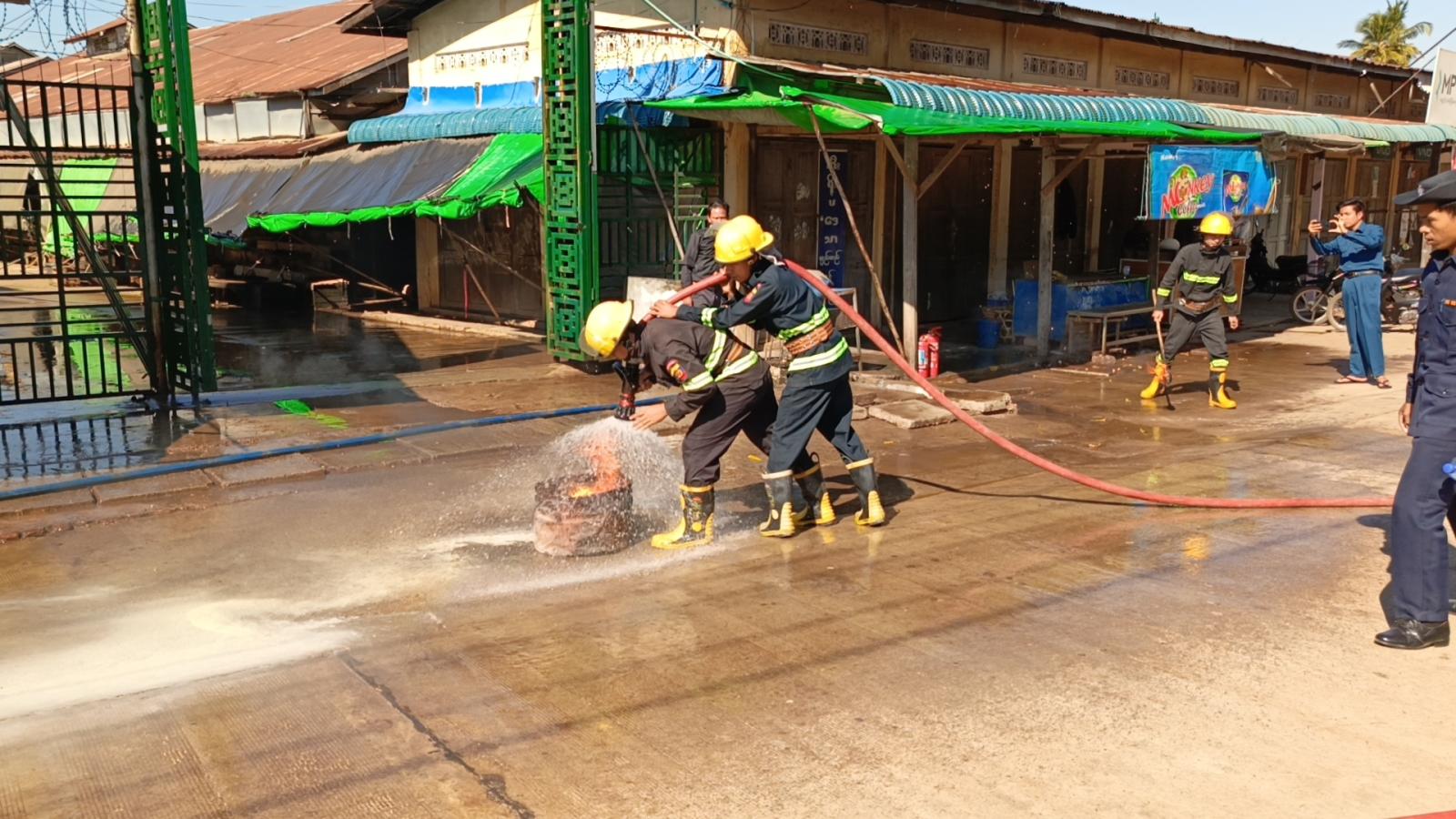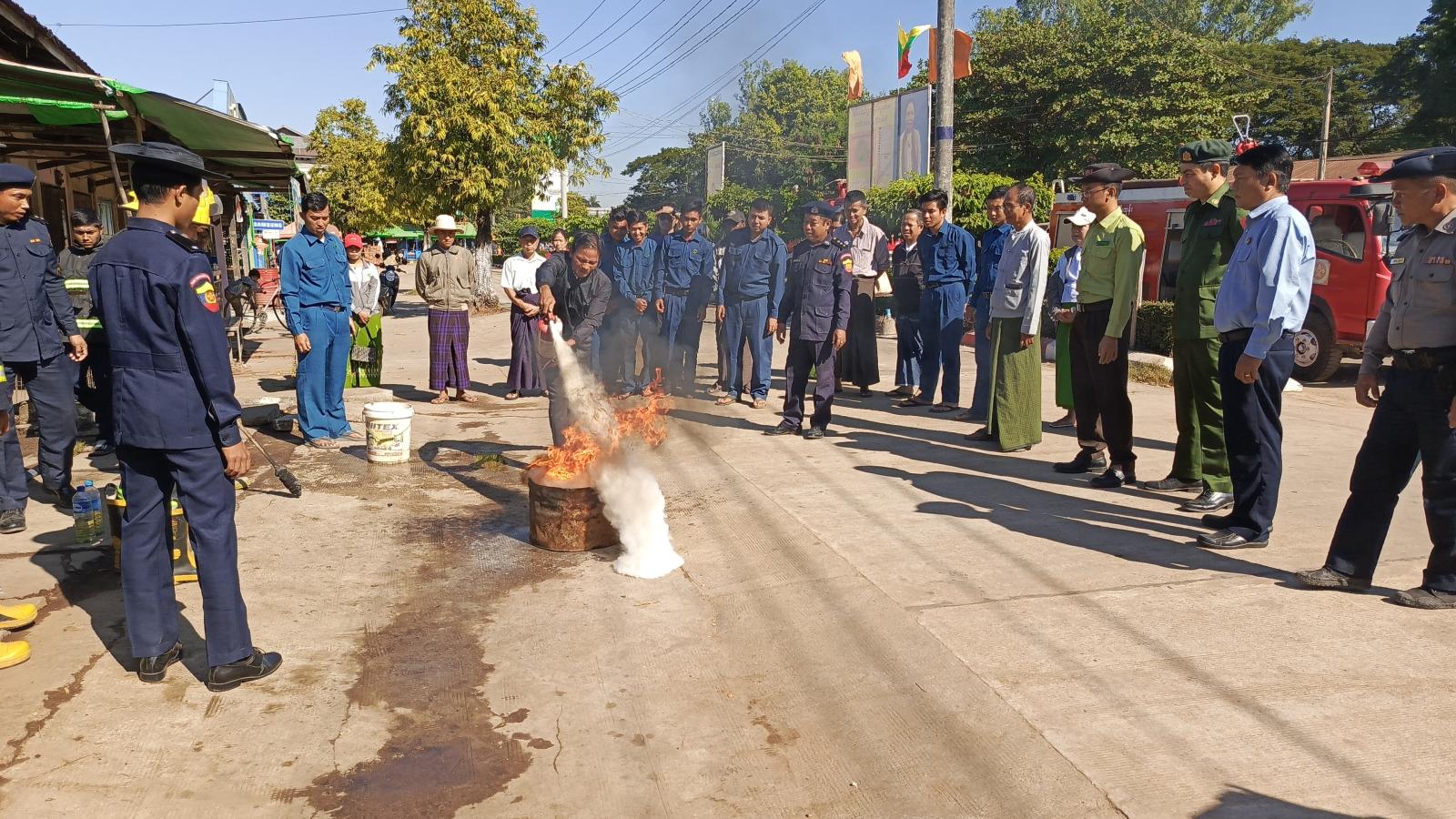 အဆိုပါ လက်တွေ့မီးငြှိမ်းသတ်သရုပ်ပြလေ့ကျင့်ခြင်းကို မြို့နယ်စီမံခန့်ခွဲရေးနှင့်အုပ်ချုပ်ရေးကော်မတီဥက္ကဋ္ဌ ဦးမျိုးသက်အောင်နှင့်အဖွဲ့ဝင်များ၊ မြို့နယ်စည်ပင်သာယာရေးအမှုဆောင်အရာရှိနှင့် မြို့နယ်စည်ပင်သာယာဝန်ထမ်းများ၊ မြို့နယ်လျှပ်စစ်အင်ဂျင်နီယာနှင့်ဝန်ထမ်းများ၊ ဈေးတာဝန်ခံ ဦးလင်းမင်းထွန်းနှင့်ဝန်ထမ်းများ၊ ဈေးအကျိုးတော်ဆောင်ကော်မတီဝင်များတက်ရောက်၍ လက်တွေ့ပါဝင်ဆောင်ရွက်ခဲ့ကြကြောင်း သိရသည်။