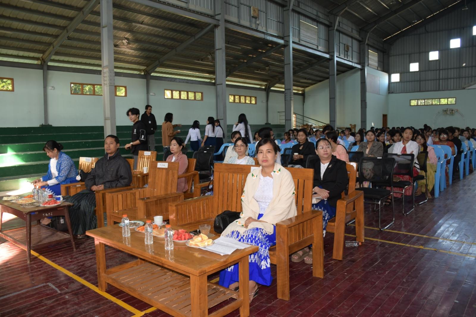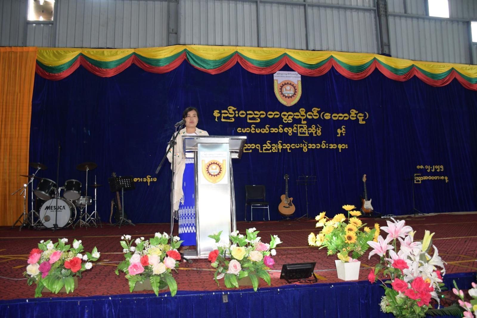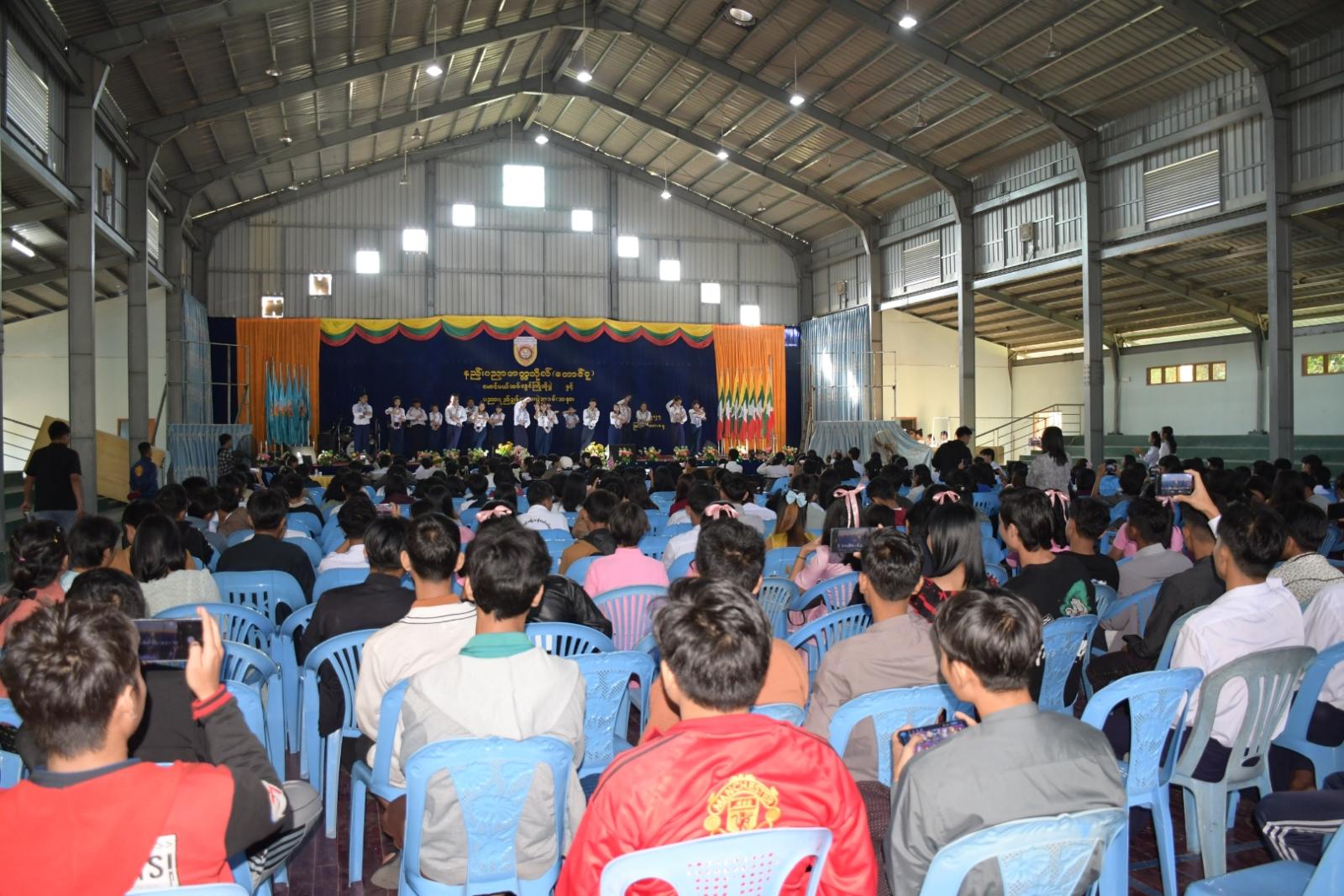 ပဲခူးတိုင်းဒေသကြီး၊ တောင်ငူခရိုင်၊ နည်းပညာတက္ကသိုလ် (တောင်ငူ)၌ (၂၀၂၅-၂၀၂၆) ပညာသင်နှစ် မောင်မယ်သစ်လွင်ကြိုဆိုပွဲနှင့် ပညာရည်ချွန်ဆုပေးပွဲအခမ်းအနားကို ယနေ့နံနက်ပိုင်းက ကျင်းပရာ နည်းပညာတက္ကသိုလ်(တောင်ငူ) ဒုတိယပါမောက္ခချုပ် ဒေါက်တာတင်ဝင်းမွန်၊ ဆရာ၊ ဆရာမများနှင့် ကျောင်းသား ကျောင်းသူများ စုစုပေါင်း (၅၀၀)ဦးခန့် တက်ရောက်ကြသည်။