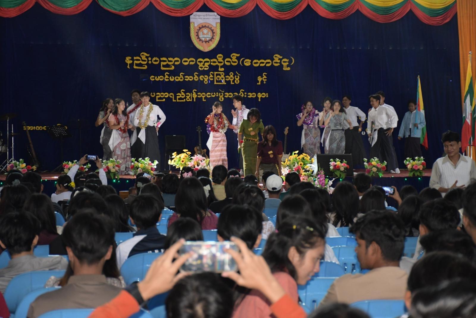 ထိုသို့ကျင်းပရာတွင် နည်းပညာတက္ကသိုလ်(တောင်ငူ)မှ ဒုတိယပါမောက္ခချုပ် ဒေါက်တာတင်ဝင်းမွန်က မောင်မယ်သစ်လွင်များအား အမှာစကားပြောကြားပြီး နည်းပညာတက္ကသိုလ်(တောင်ငူ)၊ စီနီယာအစ်ကိုကြီး၊ အစ်မကြီးကိုယ်စား နောက်ဆုံးနှစ်ကျောင်းသားကြီး မောင်ကောင်းဇော်ဟိန်း ကကြိုဆိုနှုတ်ခွန်းဆက်စကား ပြောကြားသည်။ ထို့နောက် နည်းပညာတက္ကသိုလ်(တောင်ငူ) ဒုတိယပါမောက္ခချုပ် ဒေါက်တာတင်ဝင်းမွန်နှင့် ဌာနမှူးများက (၂၀၂၄-၂၀၂၅)ပညာသင်နှစ်တွင် ထူးချွန်စွာအောင်မြင်ခဲ့သော ကျောင်းသား၊ ကျောင်းသူများအား ဆုများပေးအပ်ချီးမြှင့်ကြပြီး ကျောင်းသား၊ ကျောင်းသူများက အစီအစဥ်အတိုင်း တေးသီချင်း၊ အကအလှများဖြင့် သီဆိုကပြဖျော်ဖြေကြသည်။ နည်းပညာတက္ကသိုလ်(တောင်ငူ)တွင် မောင်မယ်သစ်လွင် ပထမနှစ် ကျောင်းသား၊ ကျောင်းသူ(၃၃၀)ဦးနှင့် စုစုပေါင်းကျောင်းသား၊ ကျောင်းသူ (၁၀၇၄)ဦး တက်ရောက်ပညာသင်ကြားလျက်ရှိကြောင်း သိရသည်။