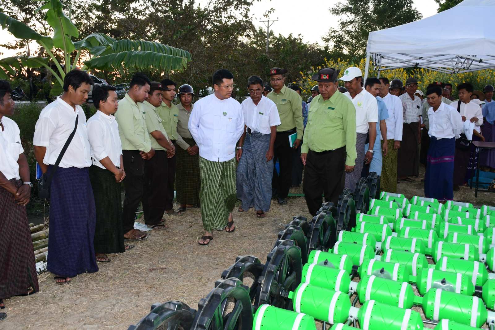 ဦးစွာ တိုင်းဒေသကြီးဝန်ကြီးချုပ် ဦးတင်မောင်ဝင်းသည် မြောင်းမြခရိုင်၊ ဝါးခယ်မမြို့နယ်၊ အူကျွန်းကျေးရွာတွင်ပြုလုပ်သည့် ၂၀၂၅-၂၀၂၆ ခုနှစ် နွေစပါး AGT 303 အထွက်တိုးမျိုးအား မျိုးစေ့ချကိရိယာ(seeder)စနစ်ဖြင့်စိုက်ပျိုးသရုပ်ပြခြင်းနှင့် ဒုတိယသီးနှံနွေစပါးစိုက်ခင်းများ၏ ကန်သင်းဘောင်တွင် ဆင်းရွှေကြာ၂ နေကြာမျိုးများအား ကျင်းစနစ်ဖြင့် စိုက်ပျိုးနေမှုများကို ကြည့်ရှုအားပေးပြီး ပန်းတိုင်အထွက်နှုန်းရောက်ရှိရေး၊ နေကြာစိုက်ခင်းတွင် ပိုးမွှားများမကျရောက်စေရေး ကြိုတင်ကာကွယ်ဆောင်ရွက်ကြရန်နှင့် မြေသြဇာကျွေးခြင်းလုပ်ငန်းများကိုလည်း စနစ်တကျဆောင်ရွက်စေရေးနှင့် အောင်မြင်ဖြစ်ထွန်းအောင် ဆောင်ရွက်စေရေး မှာကြားခဲ့ကြောင်းသိရသည်။