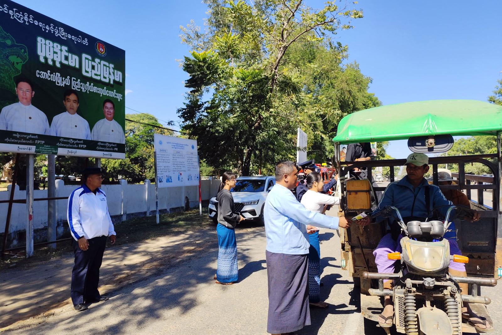 ရွေးကောက်ပွဲဆိုင်ရာ အသိပညာပေး လက်ကမ်းစာစောင်များဖြန့်ဝေခြင်းကို မြို့နယ်စီမံခန့်ခွဲရေးနှင့်အုပ်ချုပ်ရေးကော်မတီဥက္ကဋ္ဌ ဦးလှရွှေနှင့် ဝန်ထမ်းများ၊ ပြန်ကြားရေးနှင့်ပြည်သူ့ဆက်ဆံရေးဦးစီးဌာန ဦးစီးအရာရှိ ဦးမျိုးသိန်းနှင့် ဝန်ထမ်းများ၊ မြို့နယ်ကော်မရှင်ဥက္ကဋ္ဌနှင့် ဝန်ထမ်းများ၊ မြို့နယ်မီးသတ်ဦးစီမှူးနှင့် ဝန်ထမ်းများက ရွေးကောက်ပွဲဆိုင်ရာ အသိပညာပေး လက်ကမ်းစာစောင် (၅၀၀)ကို ခရီးသွားပြည်သူများအား ဖြန့်ဝေခဲ့ကြောင်း သိရသည်။