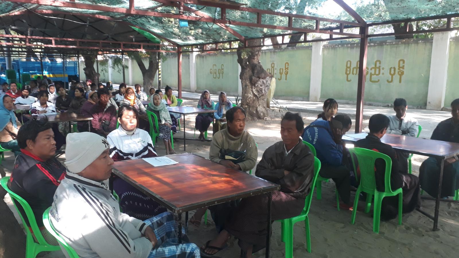 ဦးစွာ စိုက်ပျိုးဦးစီးဌာန၊ မုံရွာခရိုင်ဦးစီးမှူး ဒေါ်စန်းစန်းမြင့်က ပန်းတိုင်အထွက်နှုန်း သတ်မှတ်ထားသည့် သီးနှံများနှင့်ပတ်သက်၍ ဆောင်ရွက်ထားရှိသည့် အခြေခံအချက်များကိုလည်းကောင်း၊ မုံရွာမြို့နယ်ဦးစီးမှူး ဦးစိုးသက်အောင်က စစ်တမ်းကောက်ယူမှု အခြေအနေများအကြောင်းကိုလည်းကောင်း တက်ရောက်လာသော တောင်သူများအား ရှင်းလင်းဆွေးနွေးခဲ့ကြသည်။